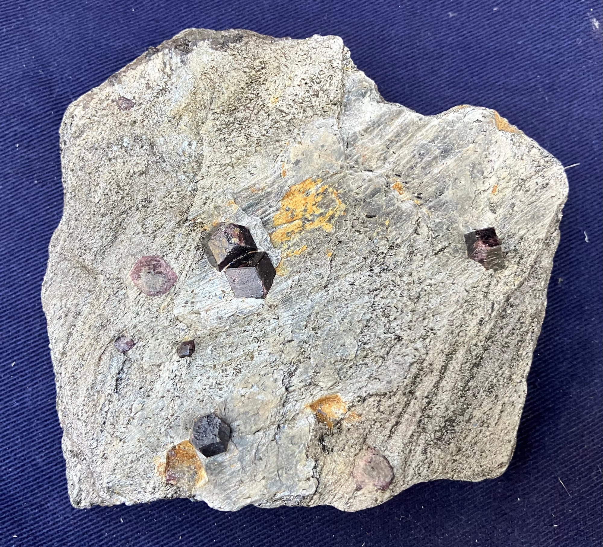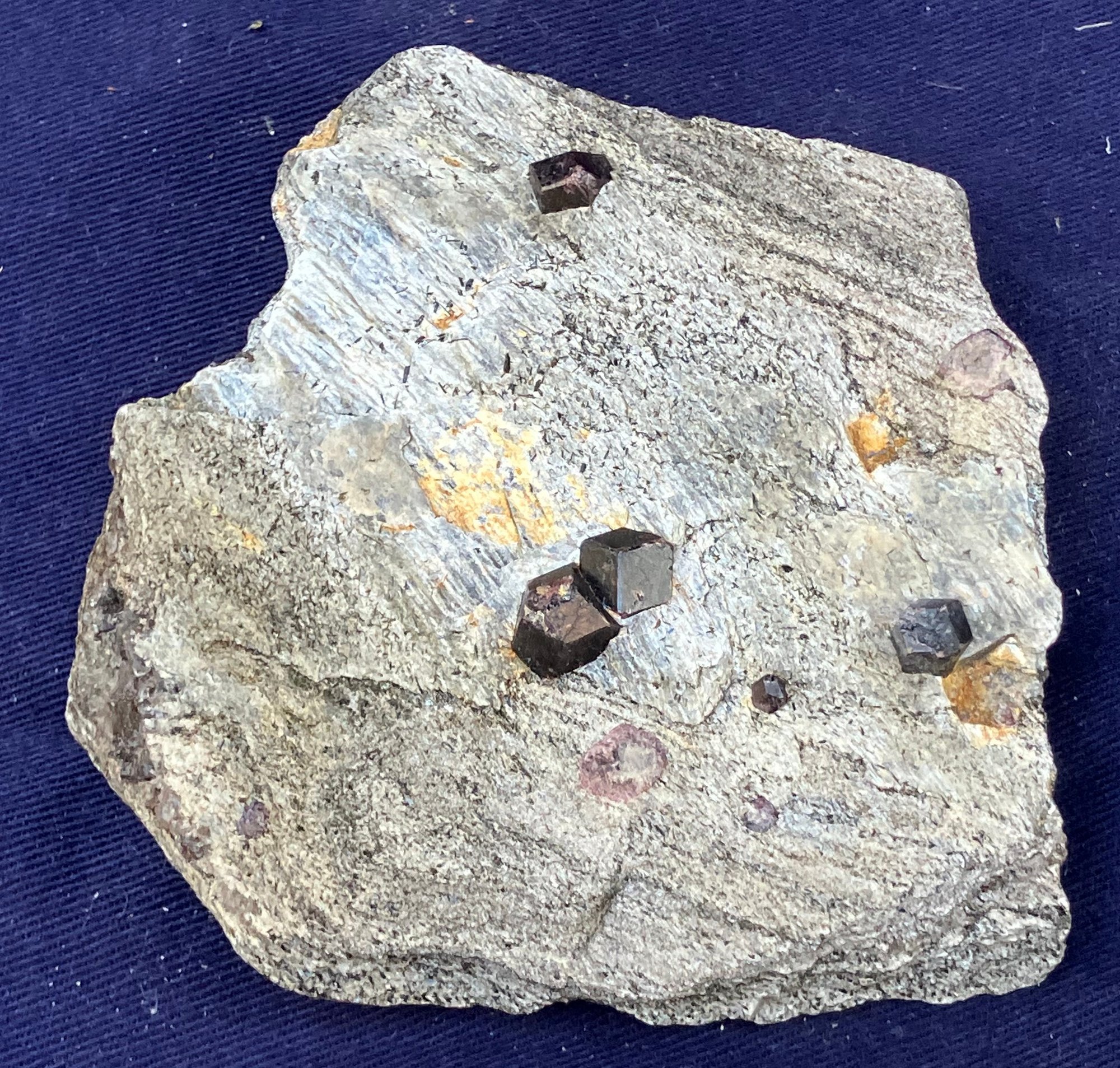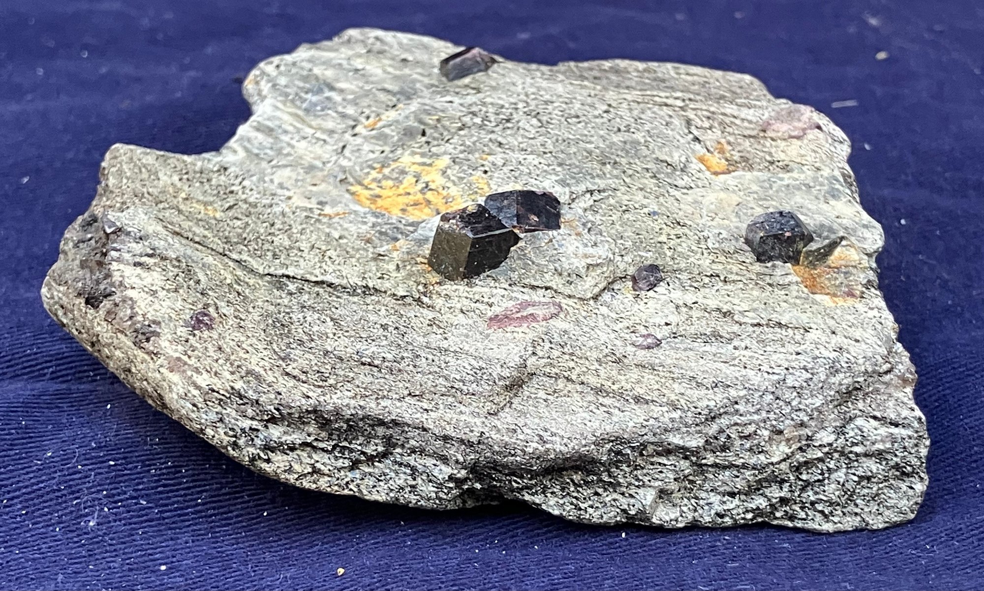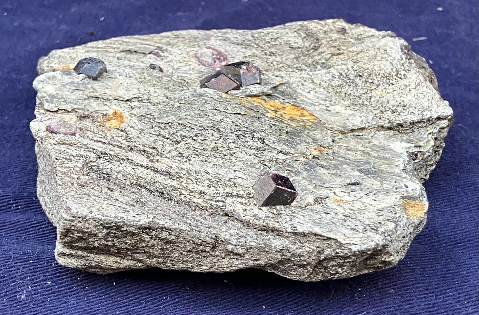 Almandine garnets in graphitic gneiss. From Green’s Farm Roxbury, CT. Measures: 3/4” tall x 3 1/2” wide x 3 1/2” long. Weighs: 6.9 ounces.