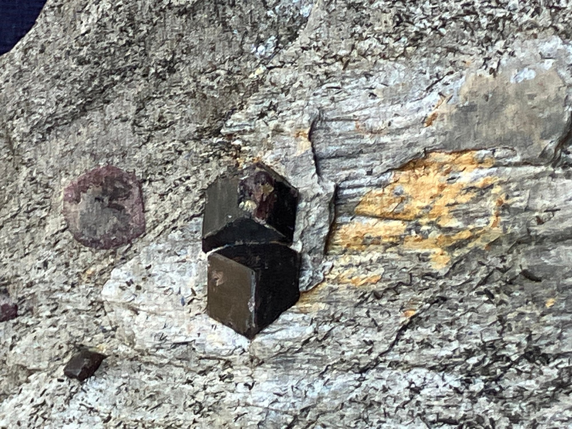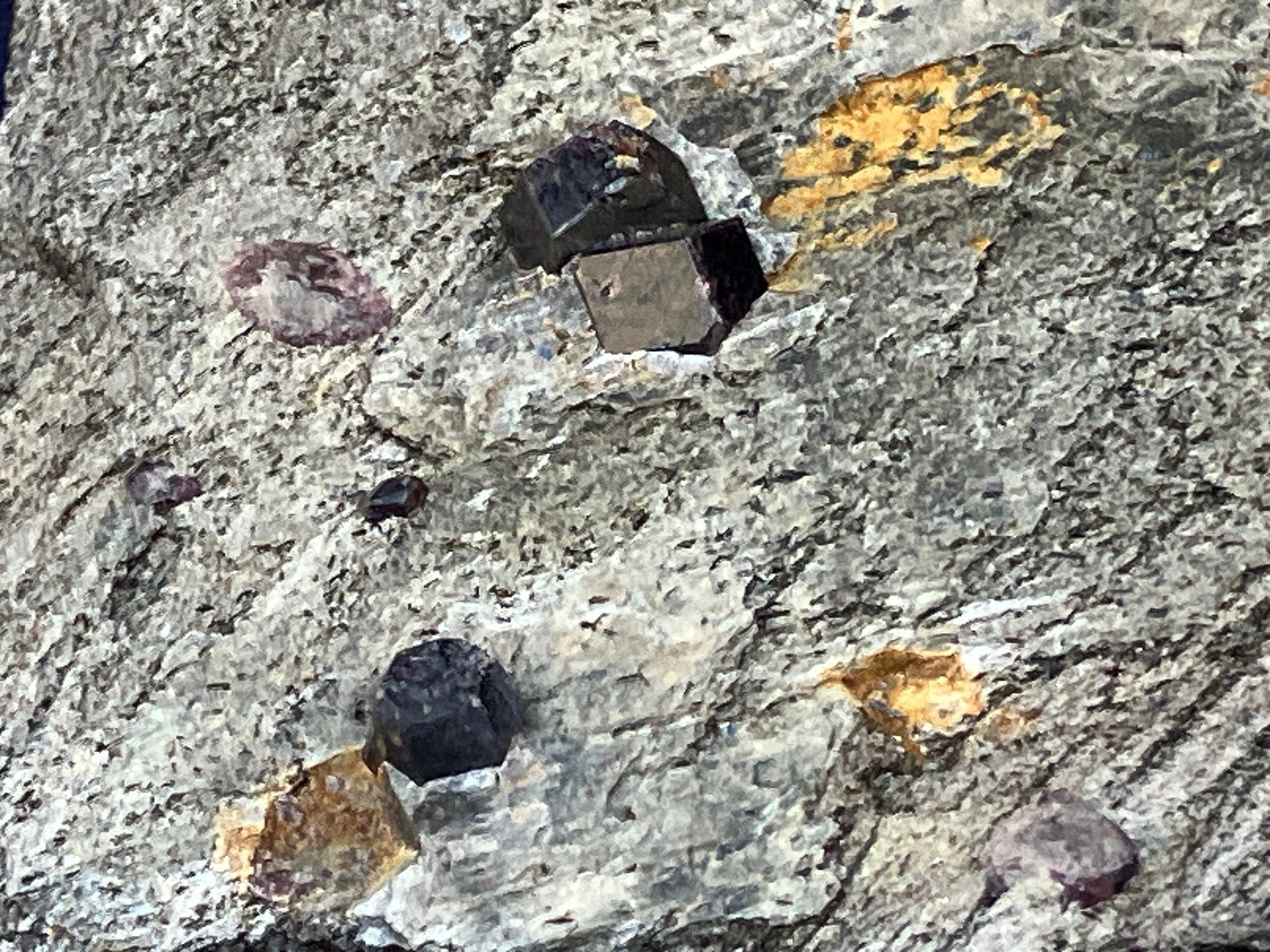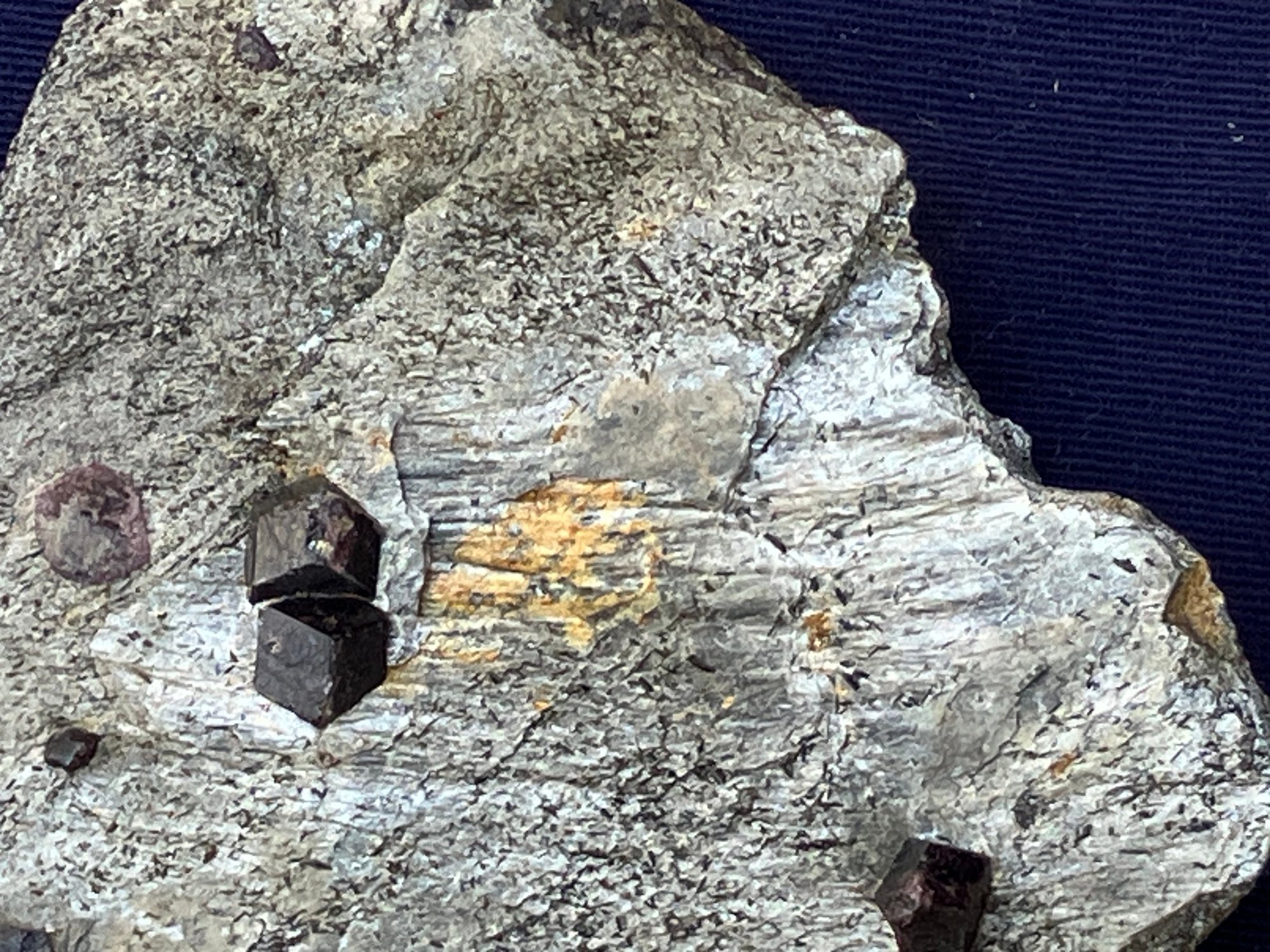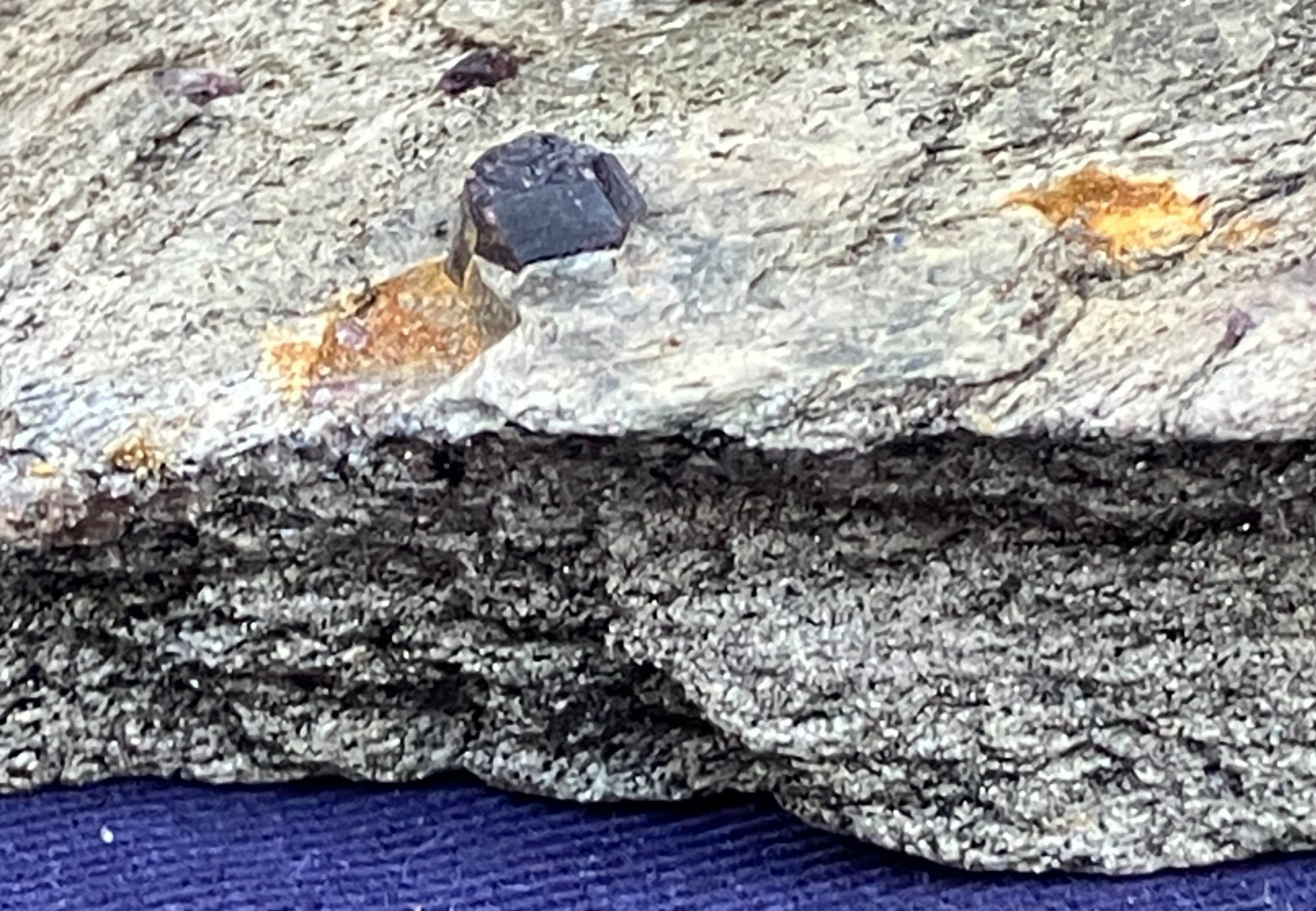 Almandine garnets in graphitic gneiss. From Green’s Farm Roxbury, CT. Measures: 3/4” tall x 3 1/2” wide x 3 1/2” long. Weighs: 6.9 ounces.