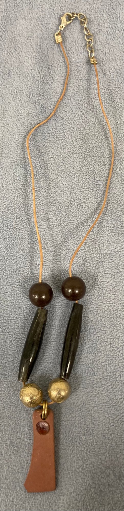 Custom Made Catlinite Necklace With Amethyst Cut . Approximate weight of amethyst is .5ctw. Made of wood bead, hair pipe, catlinite and amethyst. Size is: 10 1/2” long. Condition: See photos.