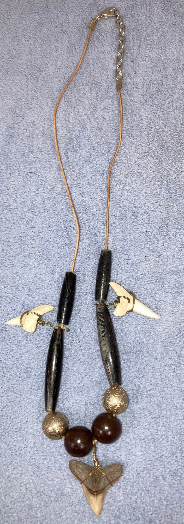 Custom made necklace. Made from fossilized sharks tooth and hair pipe. Size is: 10” long. Condition: See photos.