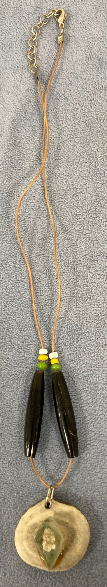 Custom Made Necklace With Antler And Green Flourite. Necklace size is: 10 1/2” long. Condition: See photos.