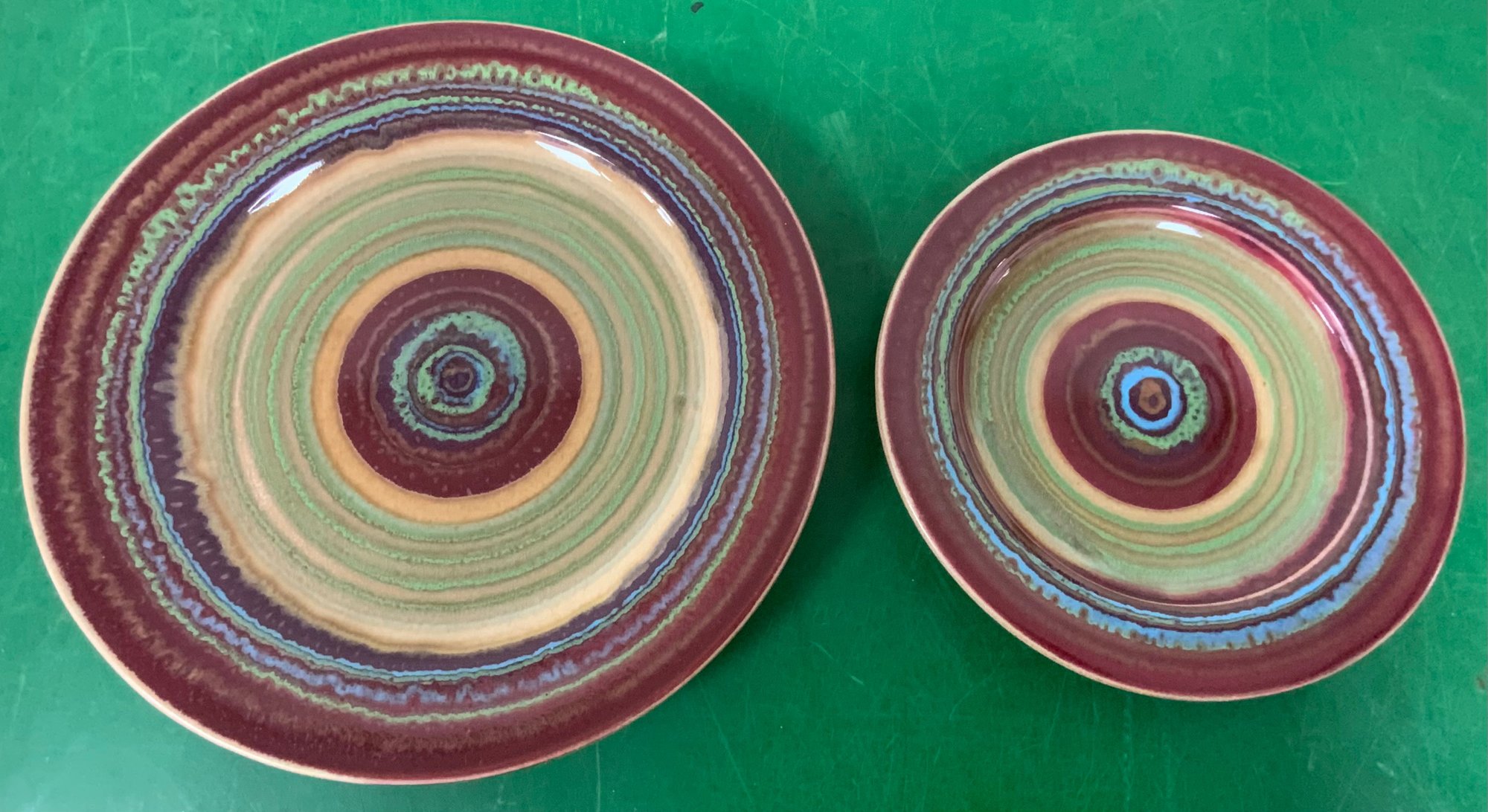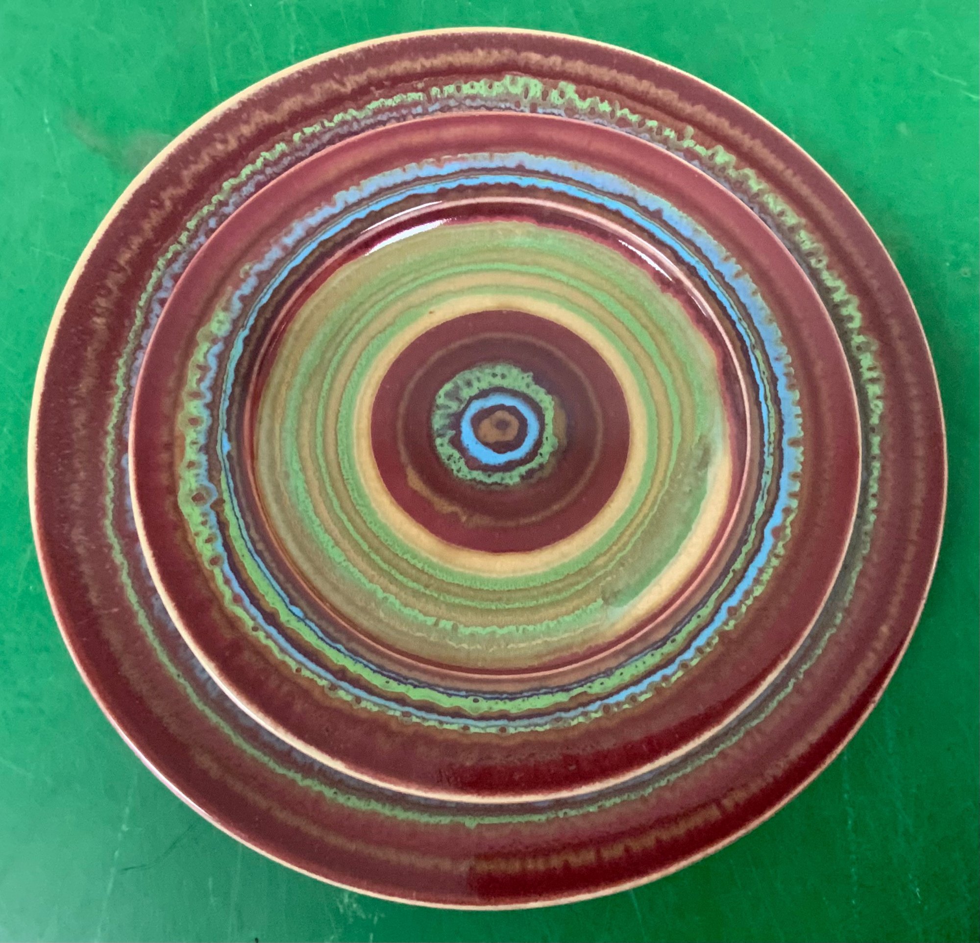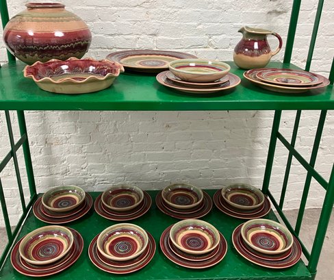 Disregard the white glare from the overhead lights. D. Lasser Ceramics 2 Piece Dinner Set (10). Very good condition. Set consists of a dinner plate, salad plate and a bowl. The entire Lasser collection is up for auction being sold separately, consisting of a total of 10 dinner sets, a pie plate, a large vase, a pitcher and a large platter. This dinner set does not include a bowl.