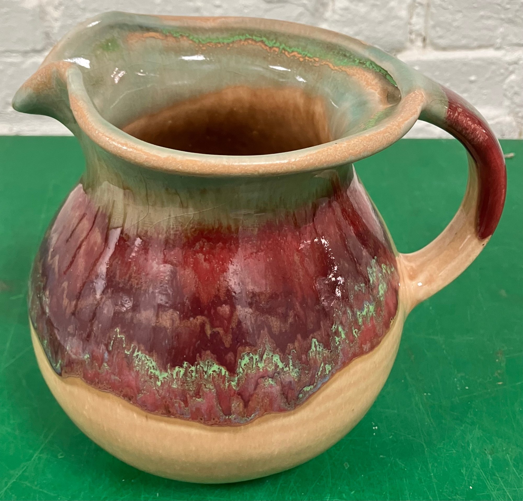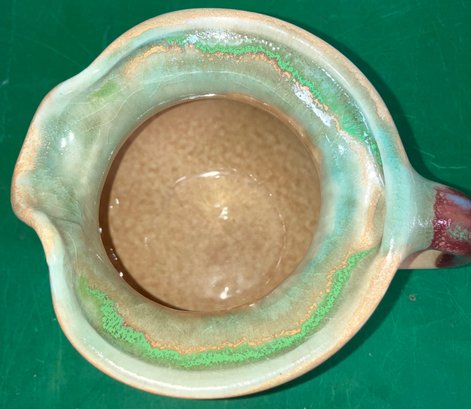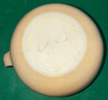 Disregard the white glare from the overhead lights. D. Lasser Ceramics pitcher. Very good condition. Dimensions are: 6 1/2” tall 7” wide. Photos of the entire are up for auction.