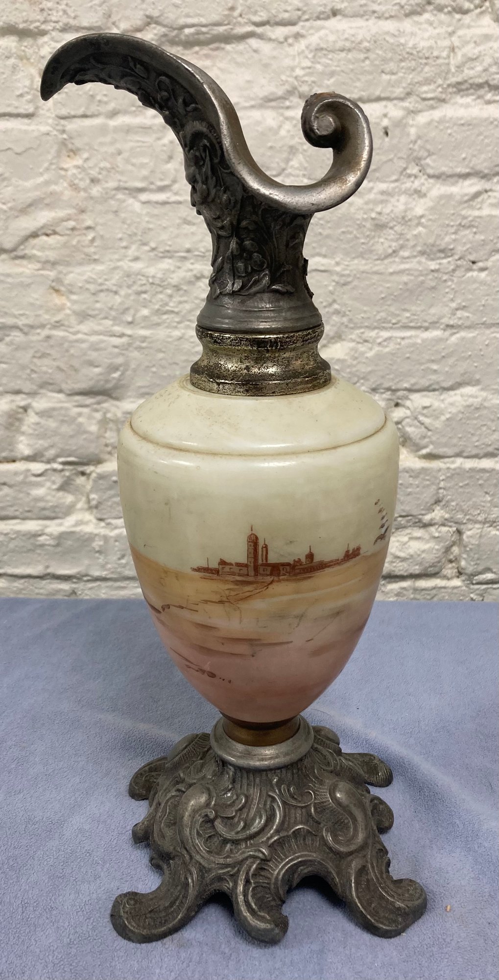 Decorative Middle Eastern/Moorish motif, hand painted. It is made of white metal with brass plating. Dimensions are: 13 1/4” tall x 5 1/2” wide x 5 1/2” deep. Condition: See photos.