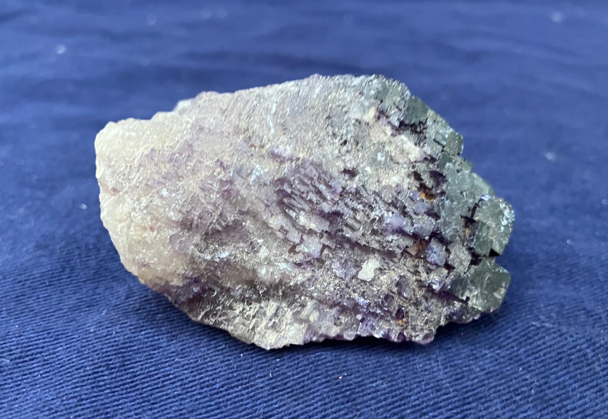 Nice fluorite crystal structure with deep purple color. Measures: 1 1/8” tall x 1 3/4” wide x 2 1/2” long. Weighs: 3.4 ounces.