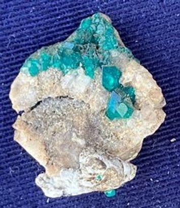 Small dioptase specimen. Measures: 1” tall x wide x 3/8” thick.