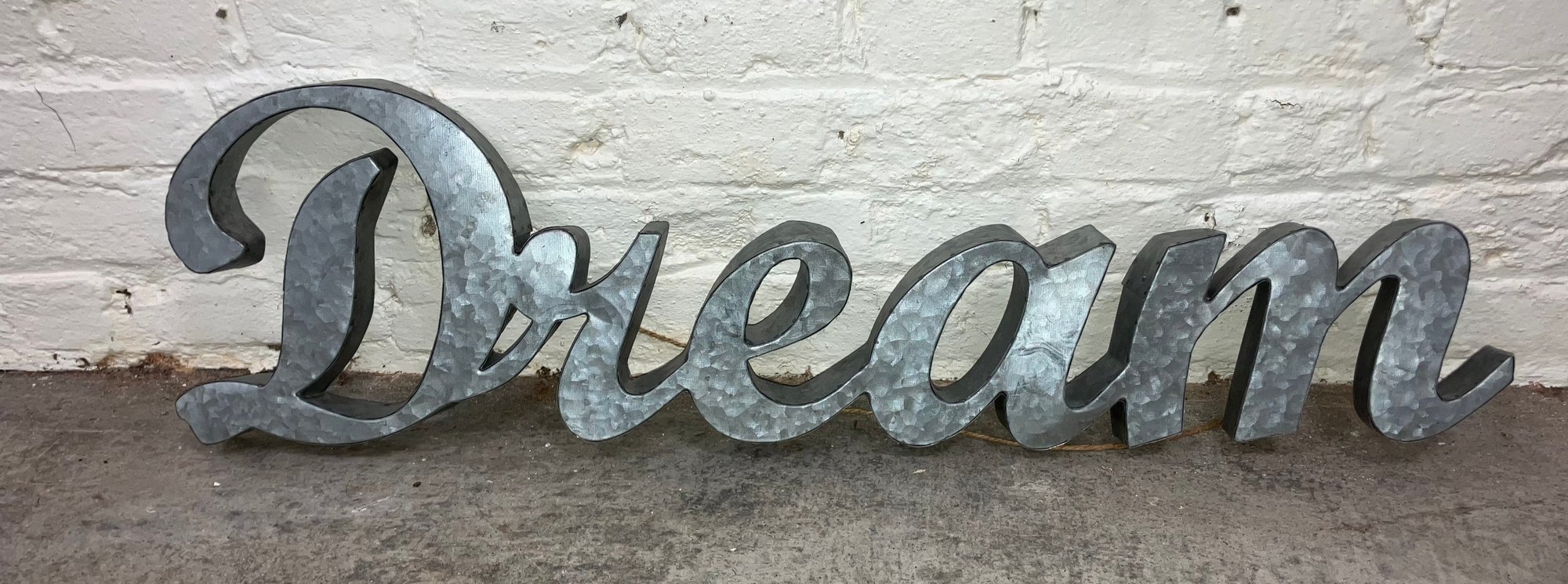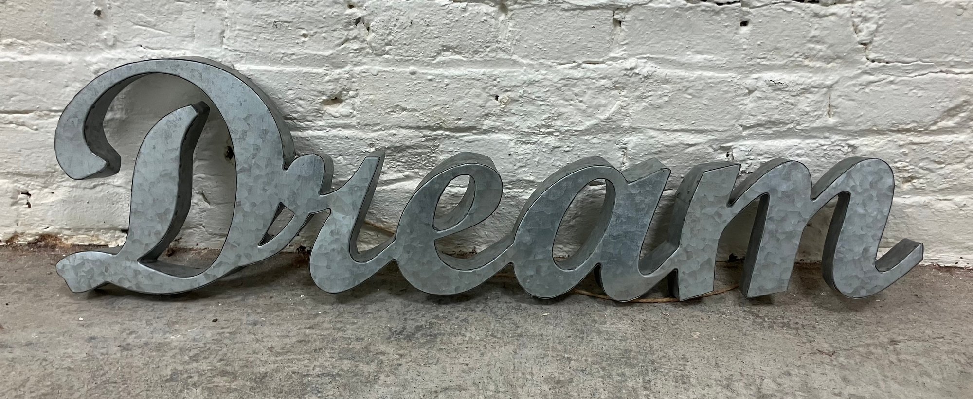 Dream wall hanging. Dimensions: 8” tall x 30” wide x 1 1/4” deep.