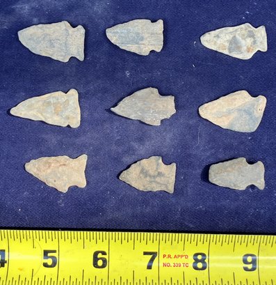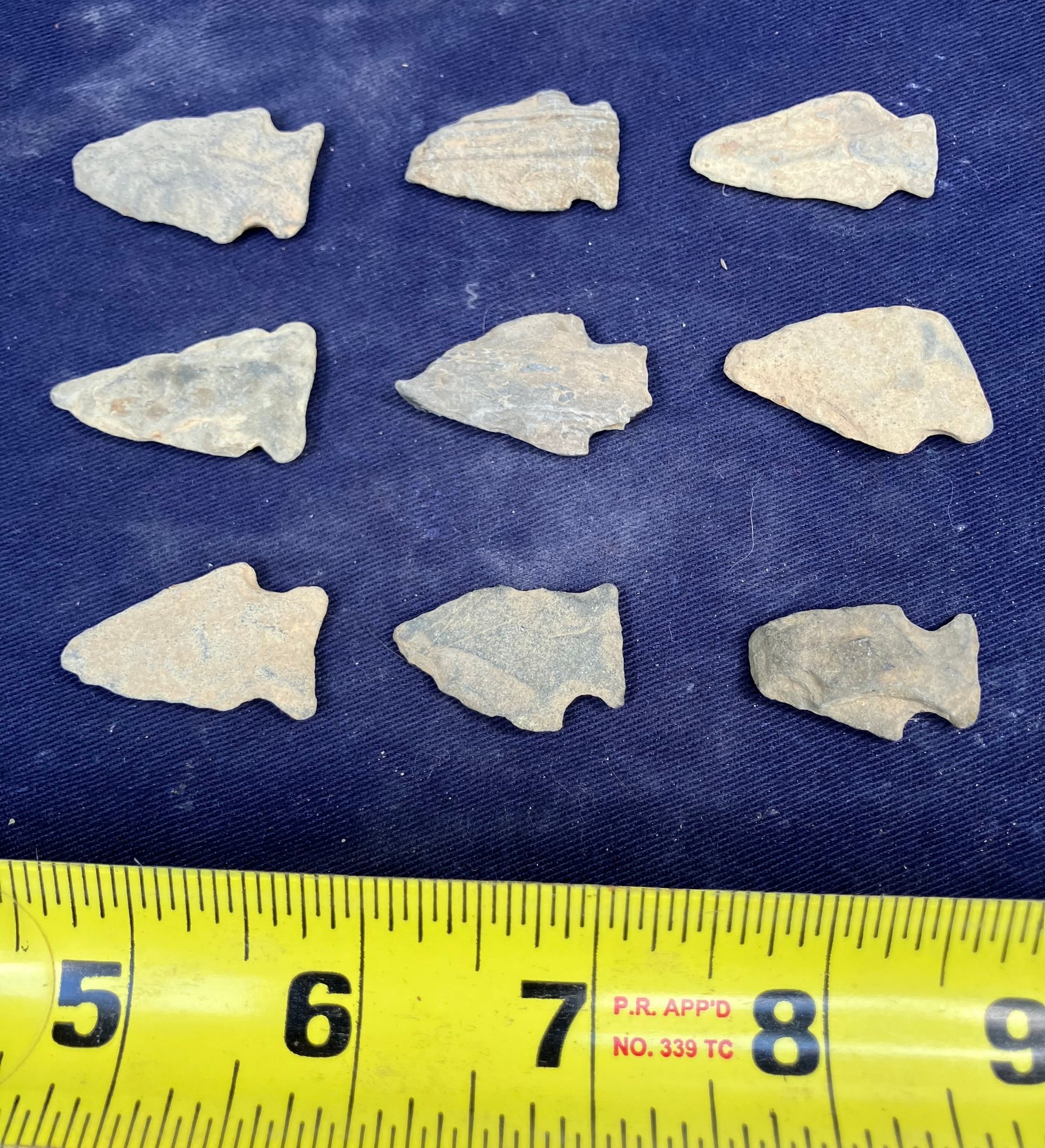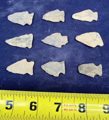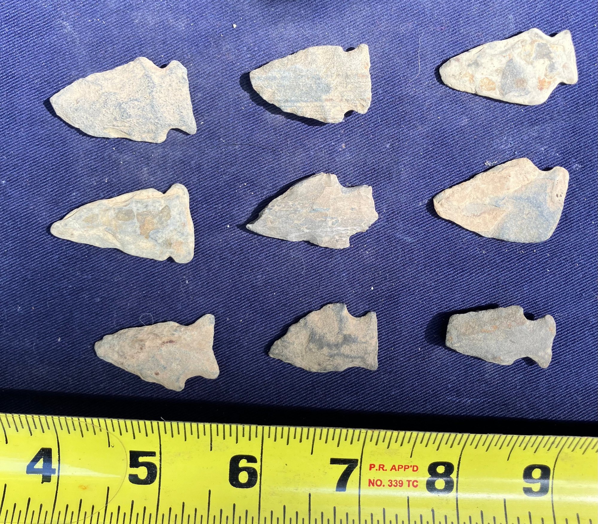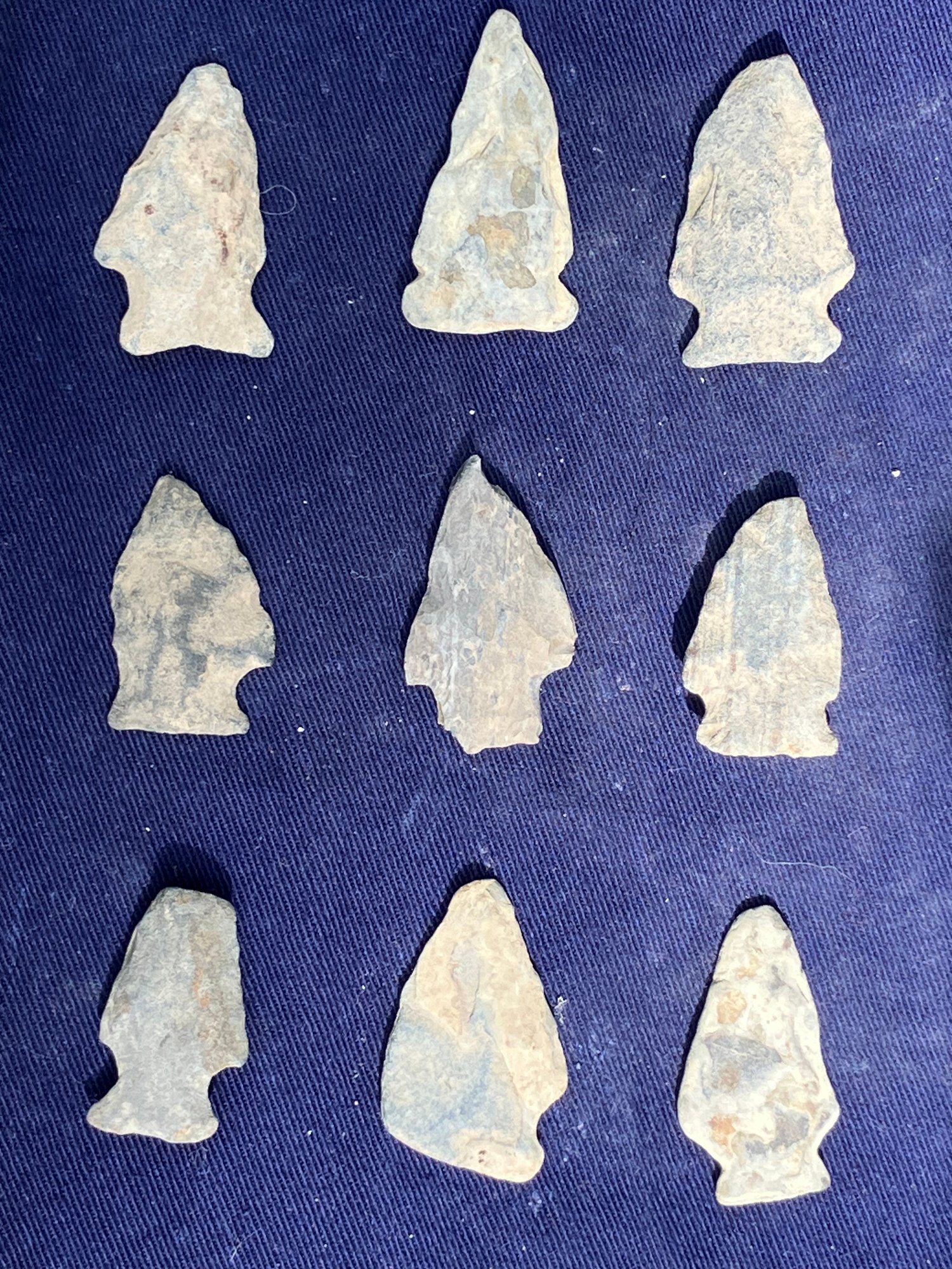 Found at a Native American dig site. Archaic bi-facial arrowhead and projectile points.