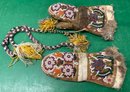Early Native American Mittens. Exceptional quality beading work all over the mittens as well as on the thumbs, which you don’t see very often. Probably 19th Century Woodland Indians. Dimensions are: 13” long x 7” wide at the opening. Condition: Loosing fur trim. See photos.