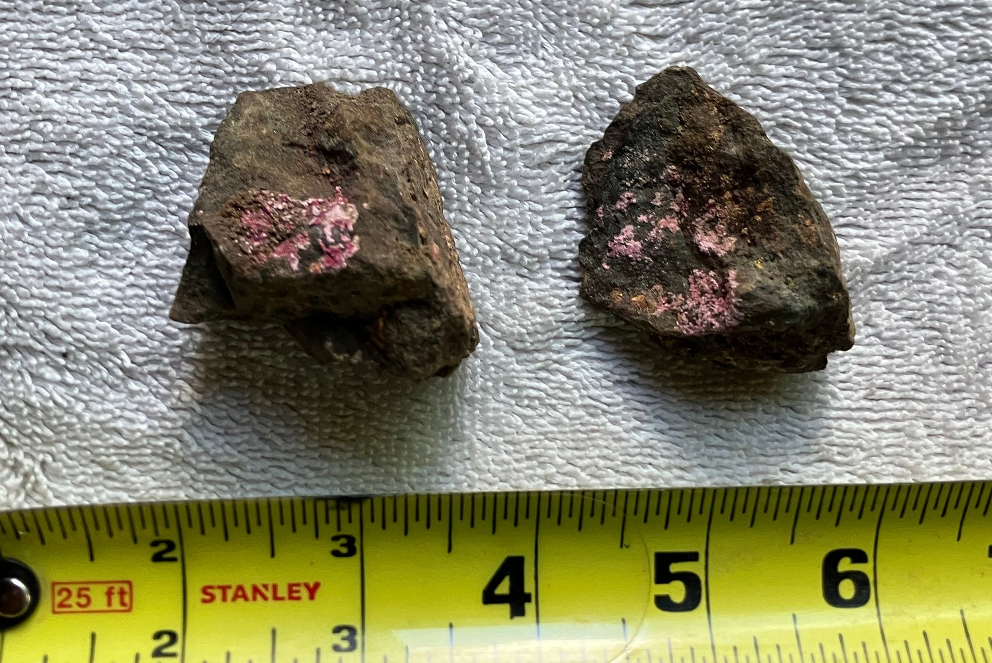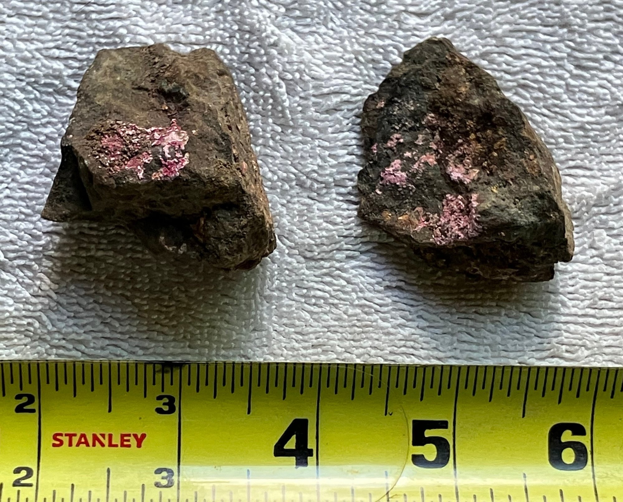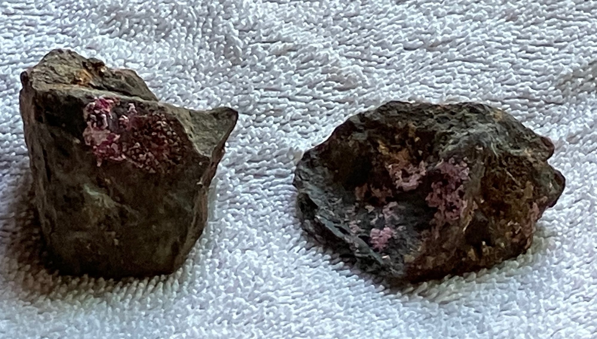Two specimens of Erythrite in matrix.