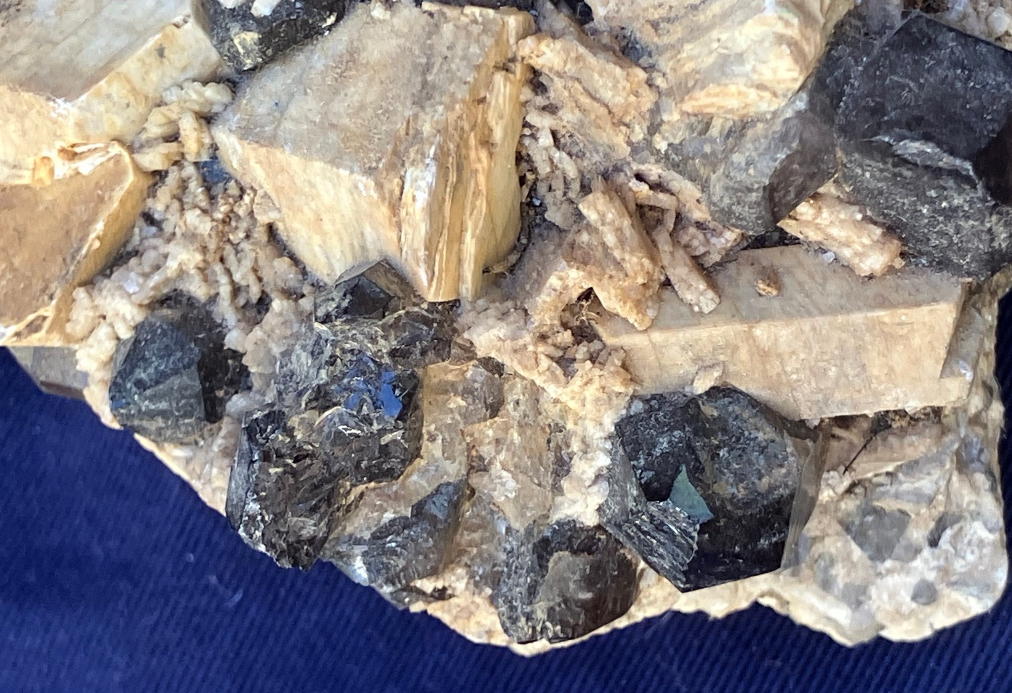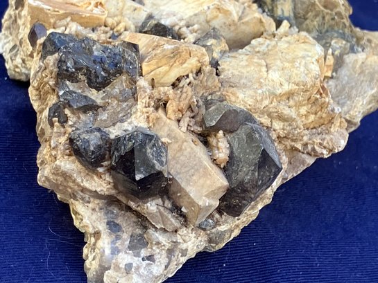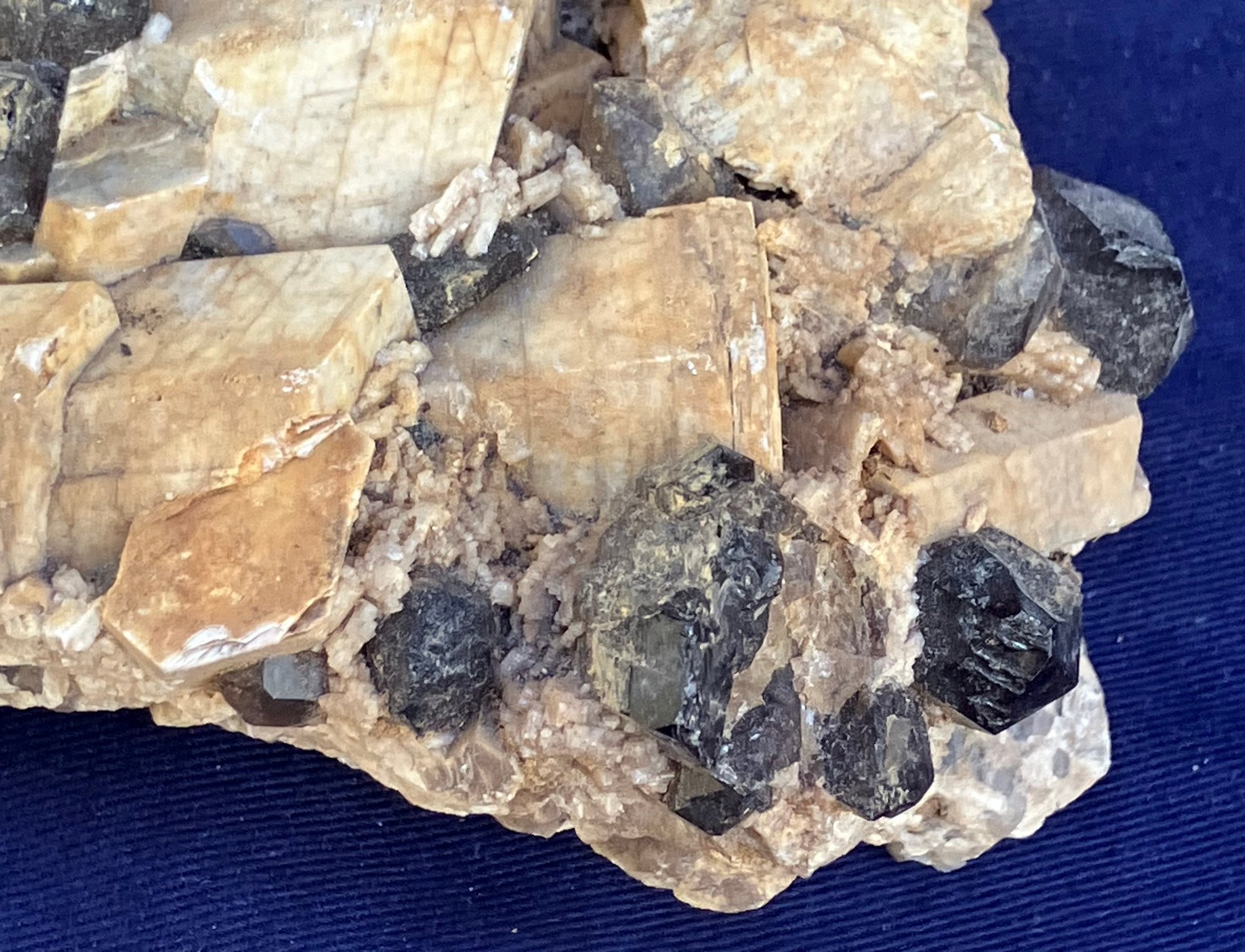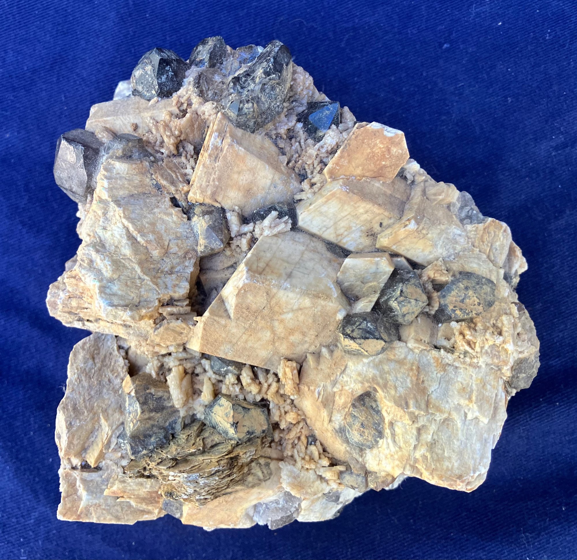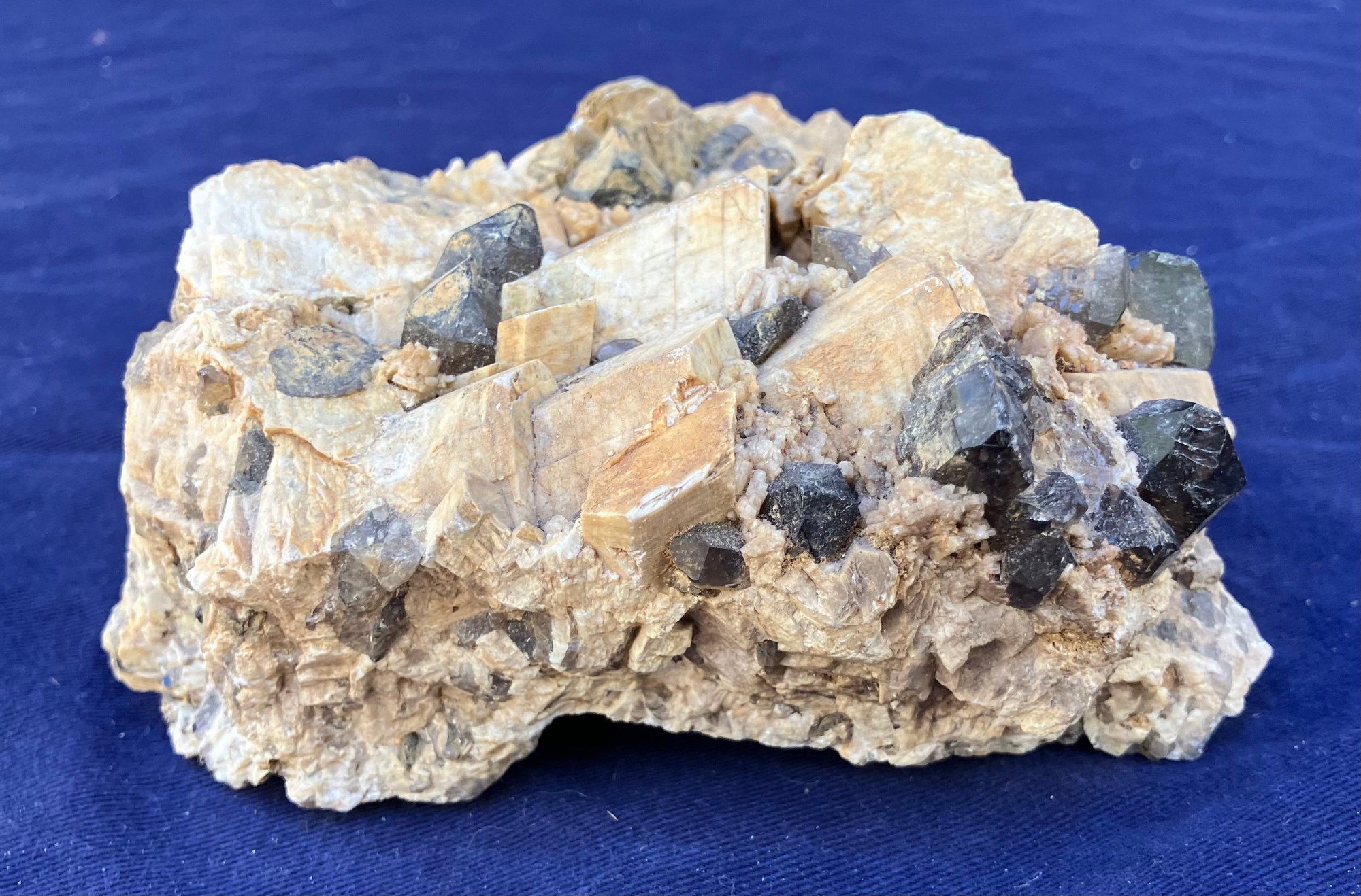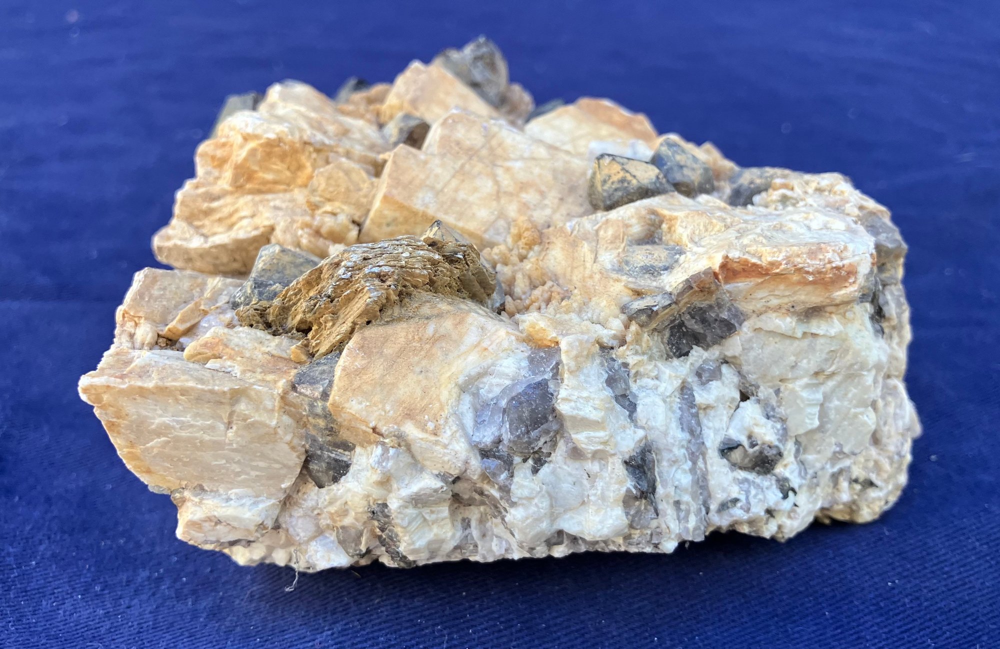 Nice smoky quartz microcline from site 10 Ossipee Gulch West Ossipee, New Hampshire. Measures: 1 3/4” tall x 4 1/4” wide x 5” long. Weighs: 1 pound 7 ounces.