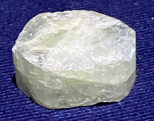 From Alstead, NH. It’s a slice of green beryl crystal. Fully faceted. It’s approximately 5/8” width by 5/16” thick. Weighs: 0.1 ounce.