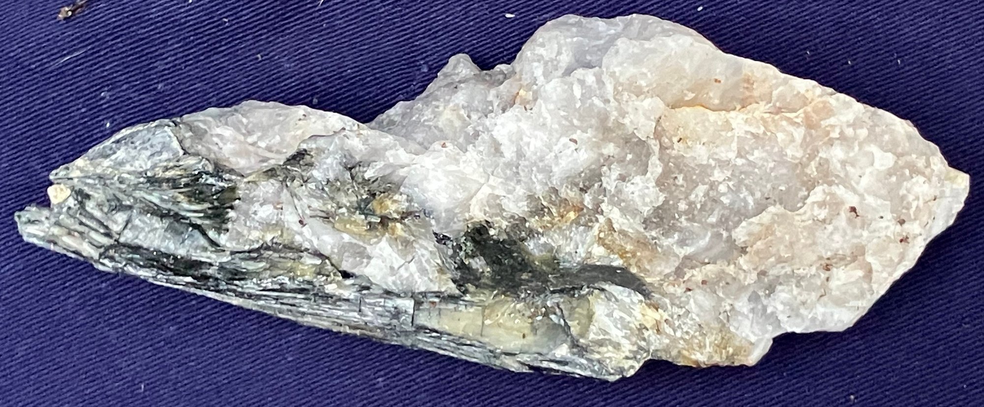 New Hampshire kyanite in Quartz matrix. Measures: 1 3/4” tall x 1 1/2” wide x 5 1/4” long. Weighs: 7.8 ounces.