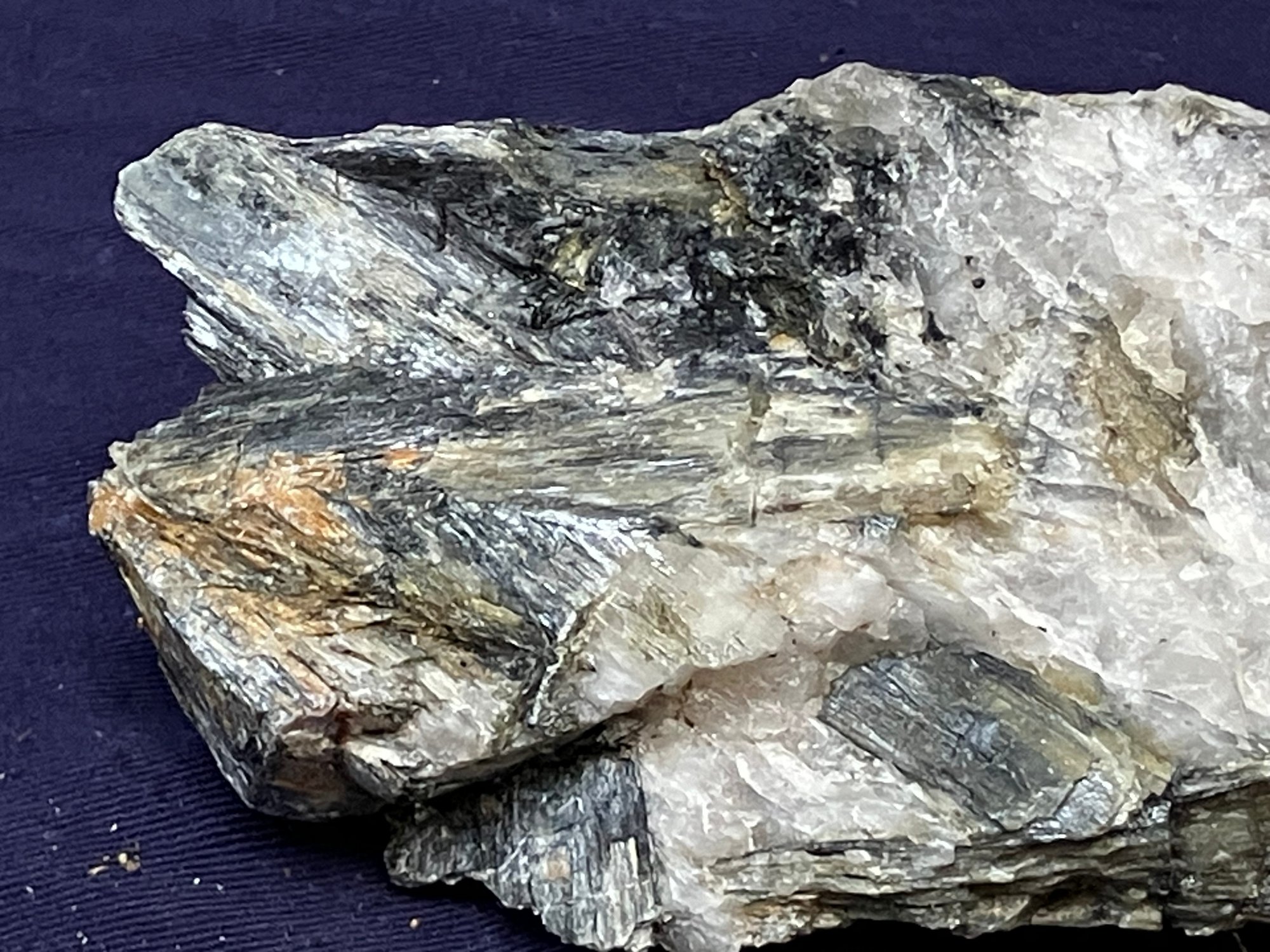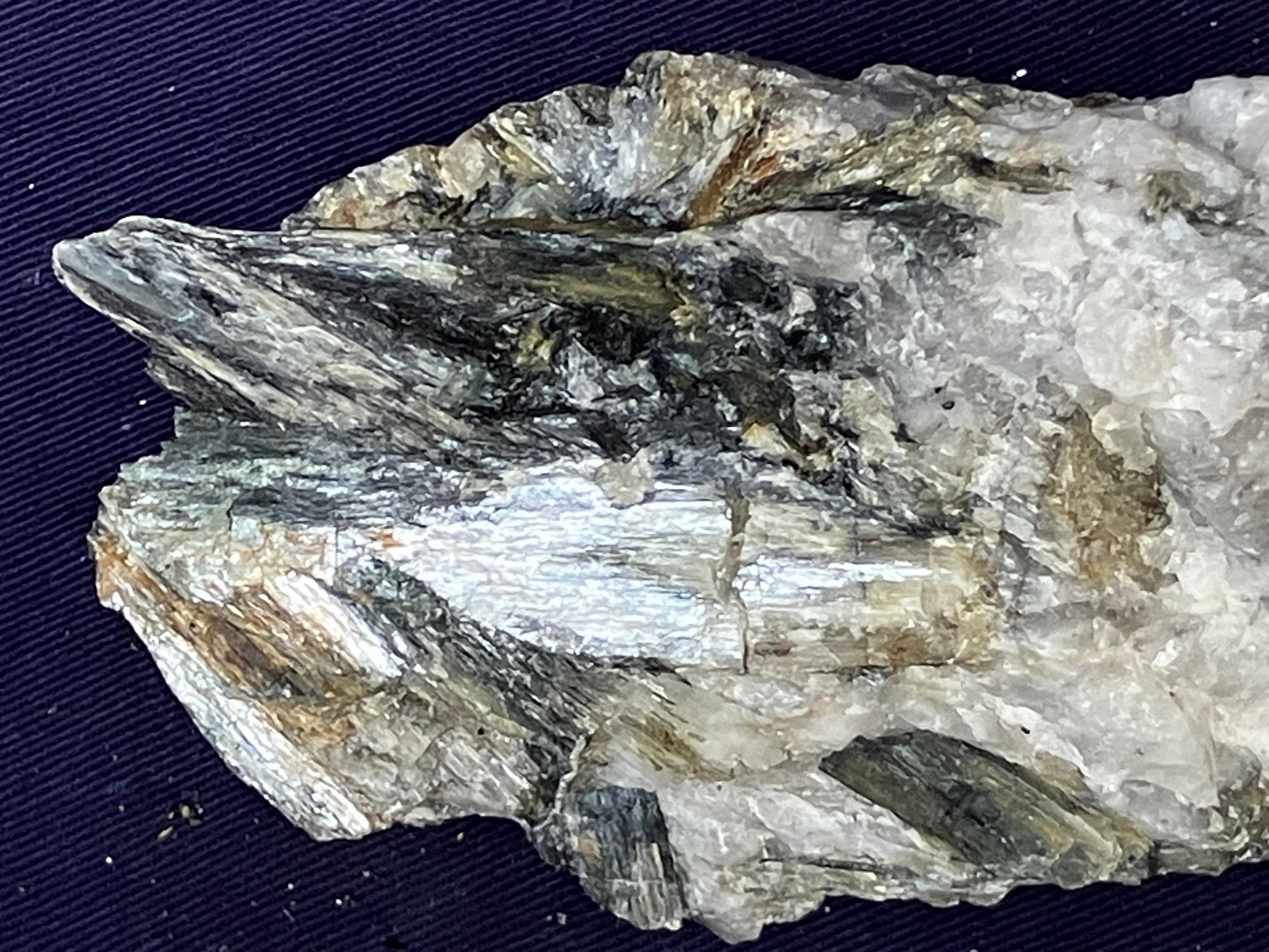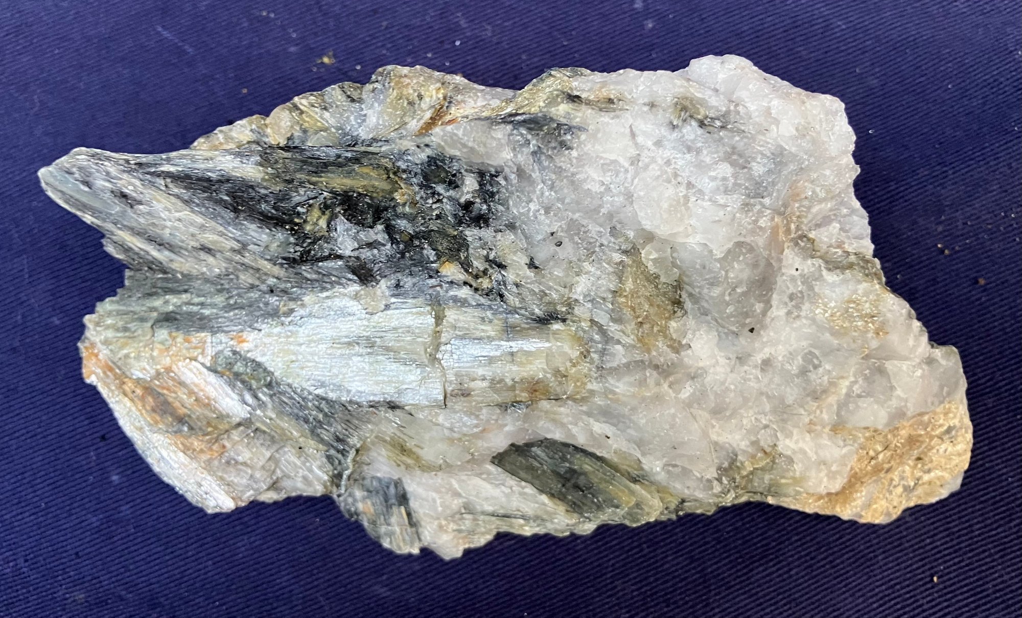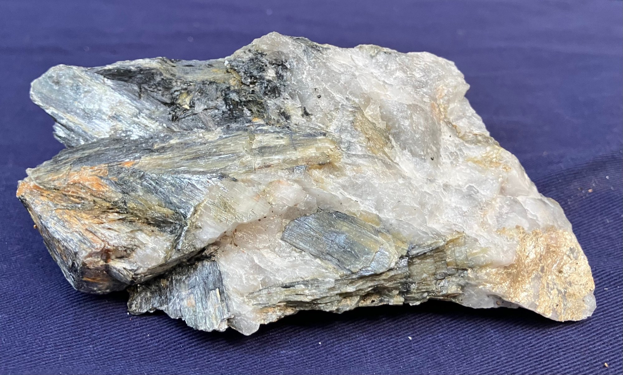 New Hampshire kyanite on Quartz matrix. From a new prospect in New Hampshire. Measures: 1 3/4” tall x 2 3/4” wide x 5” long. Weighs: 10 ounces.