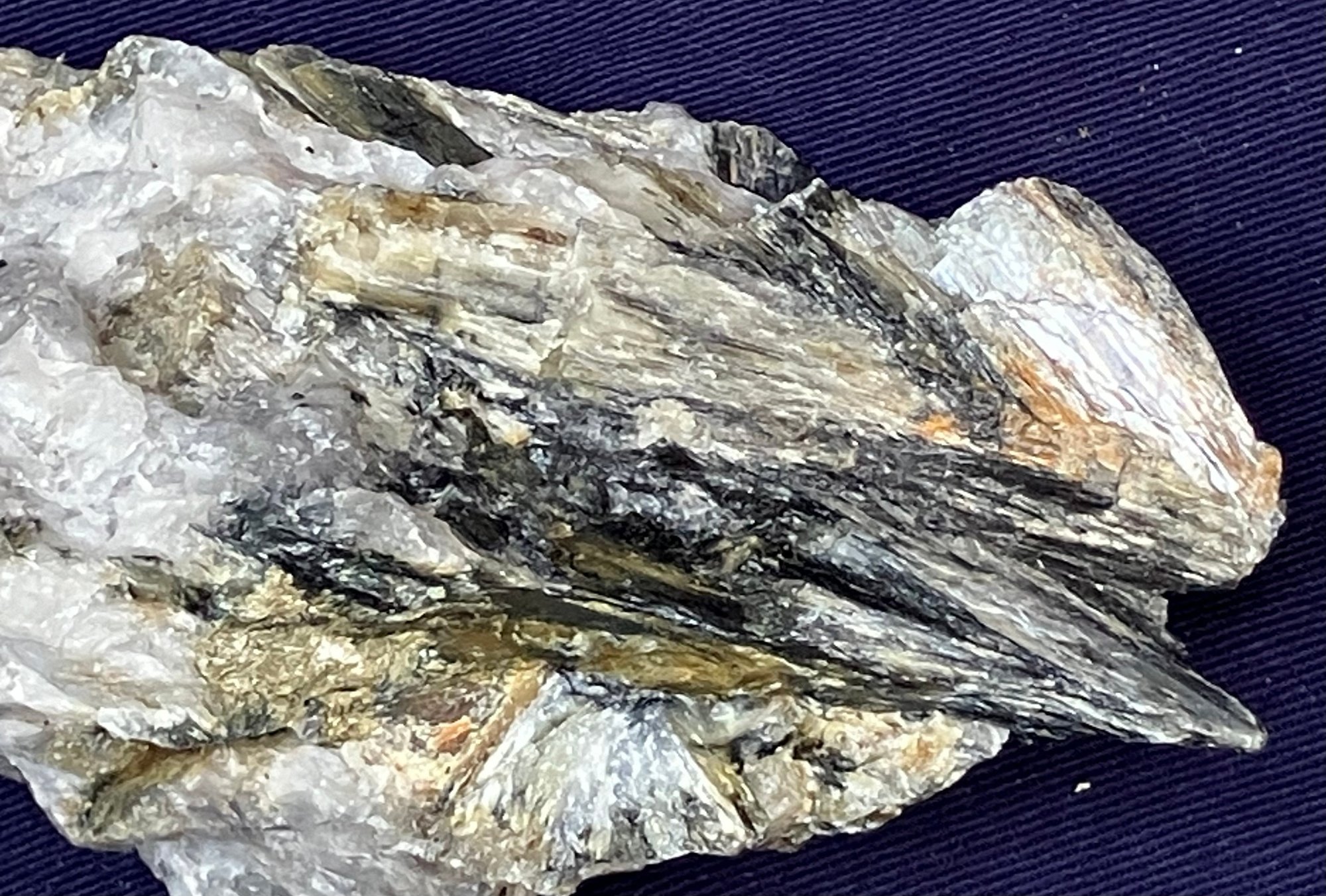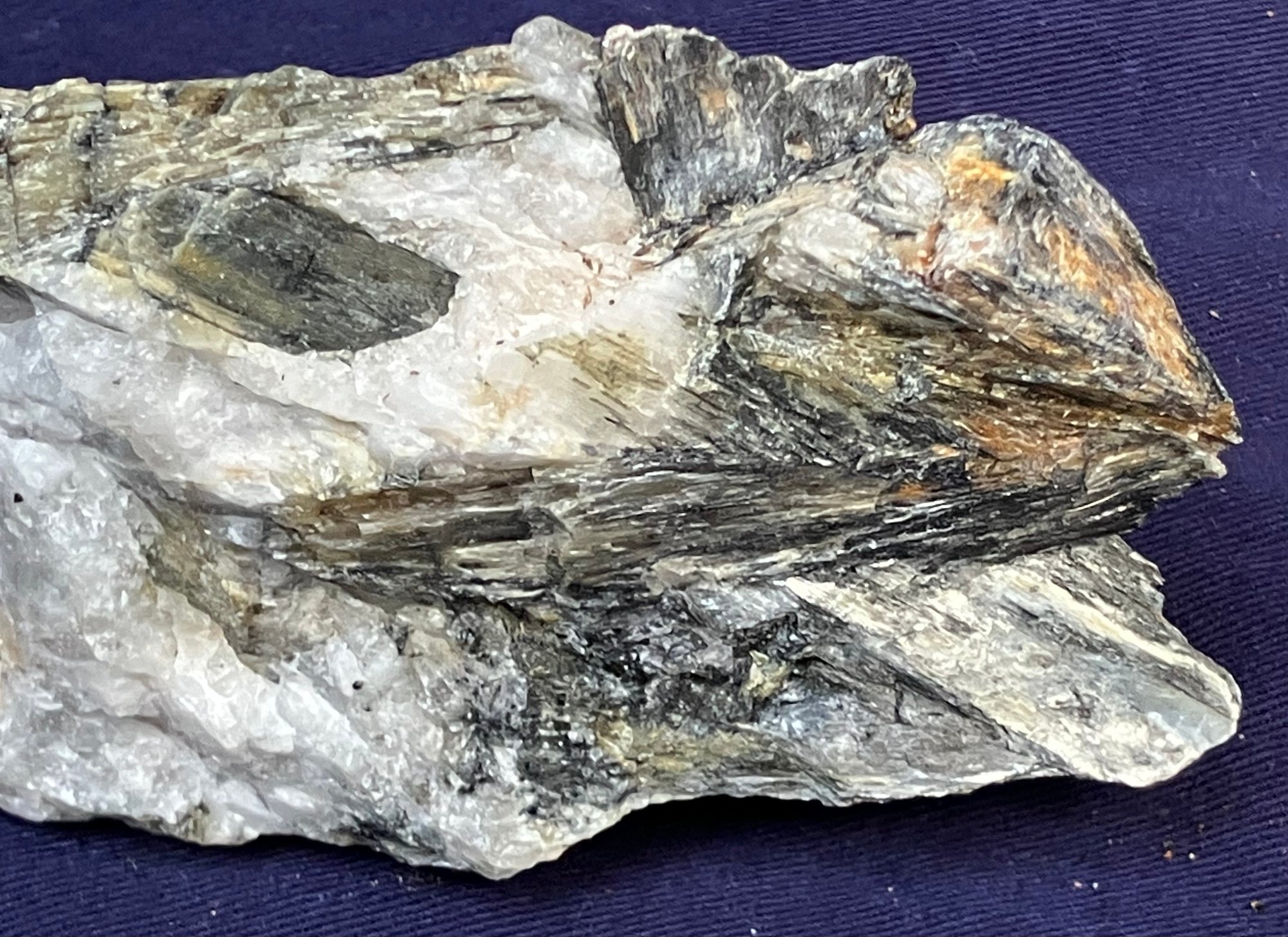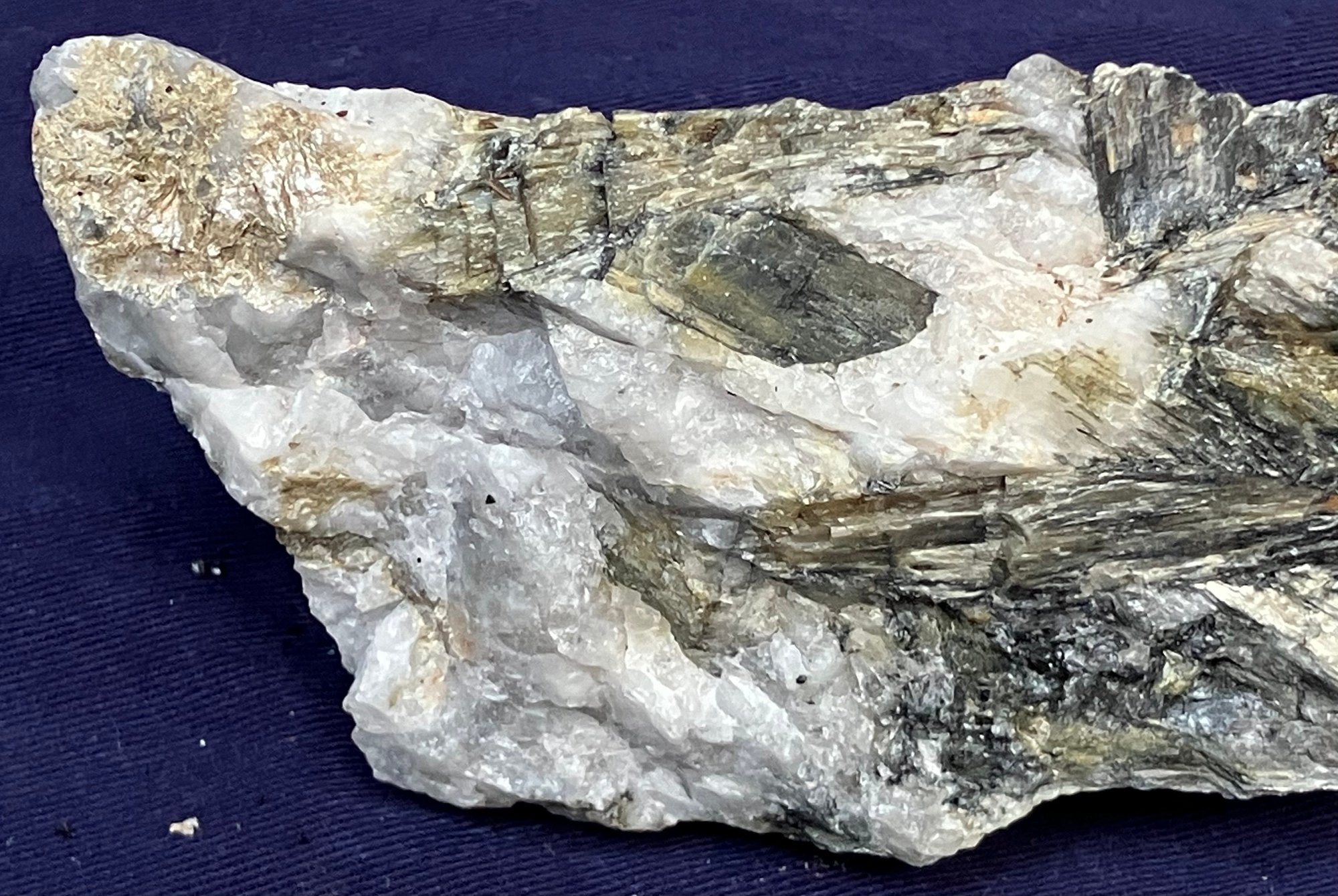 New Hampshire kyanite on Quartz matrix. From a new prospect in New Hampshire. Measures: 1 3/4” tall x 2 3/4” wide x 5” long. Weighs: 10 ounces.