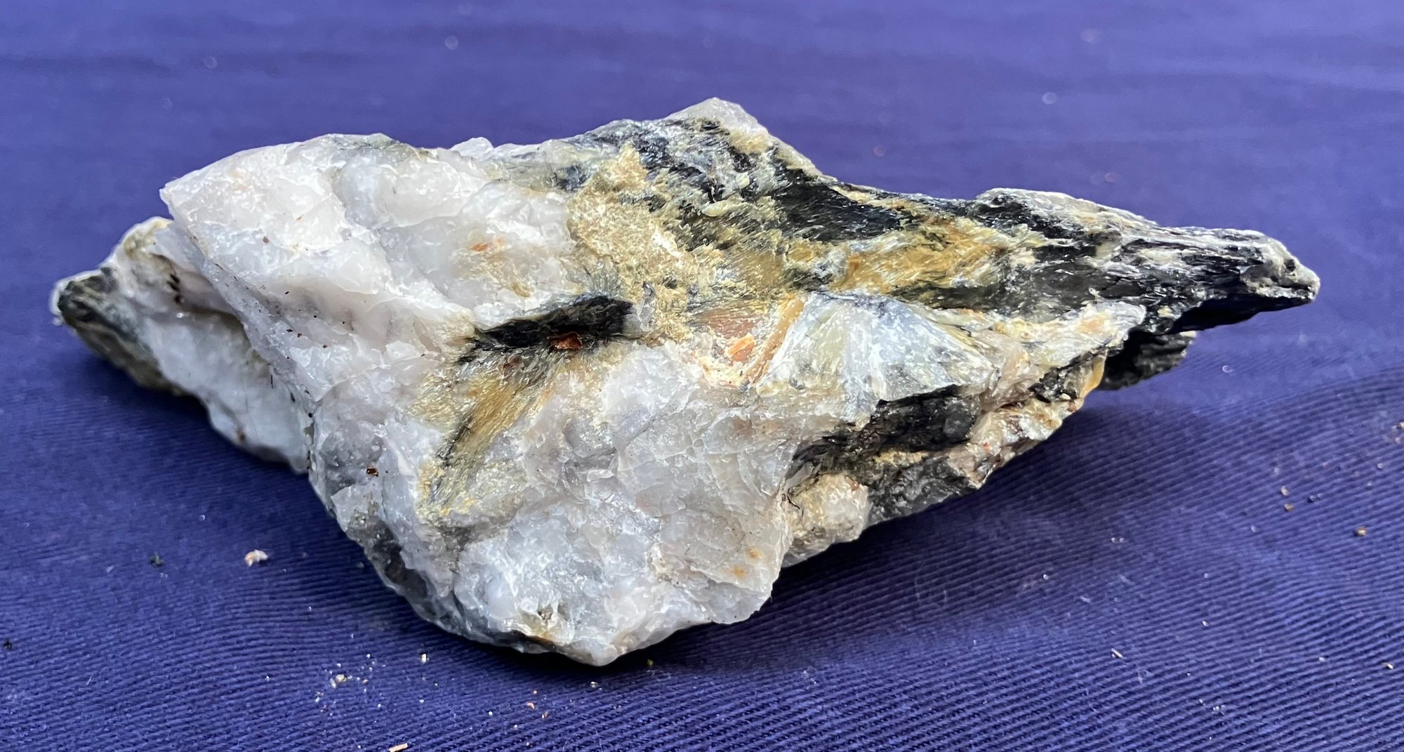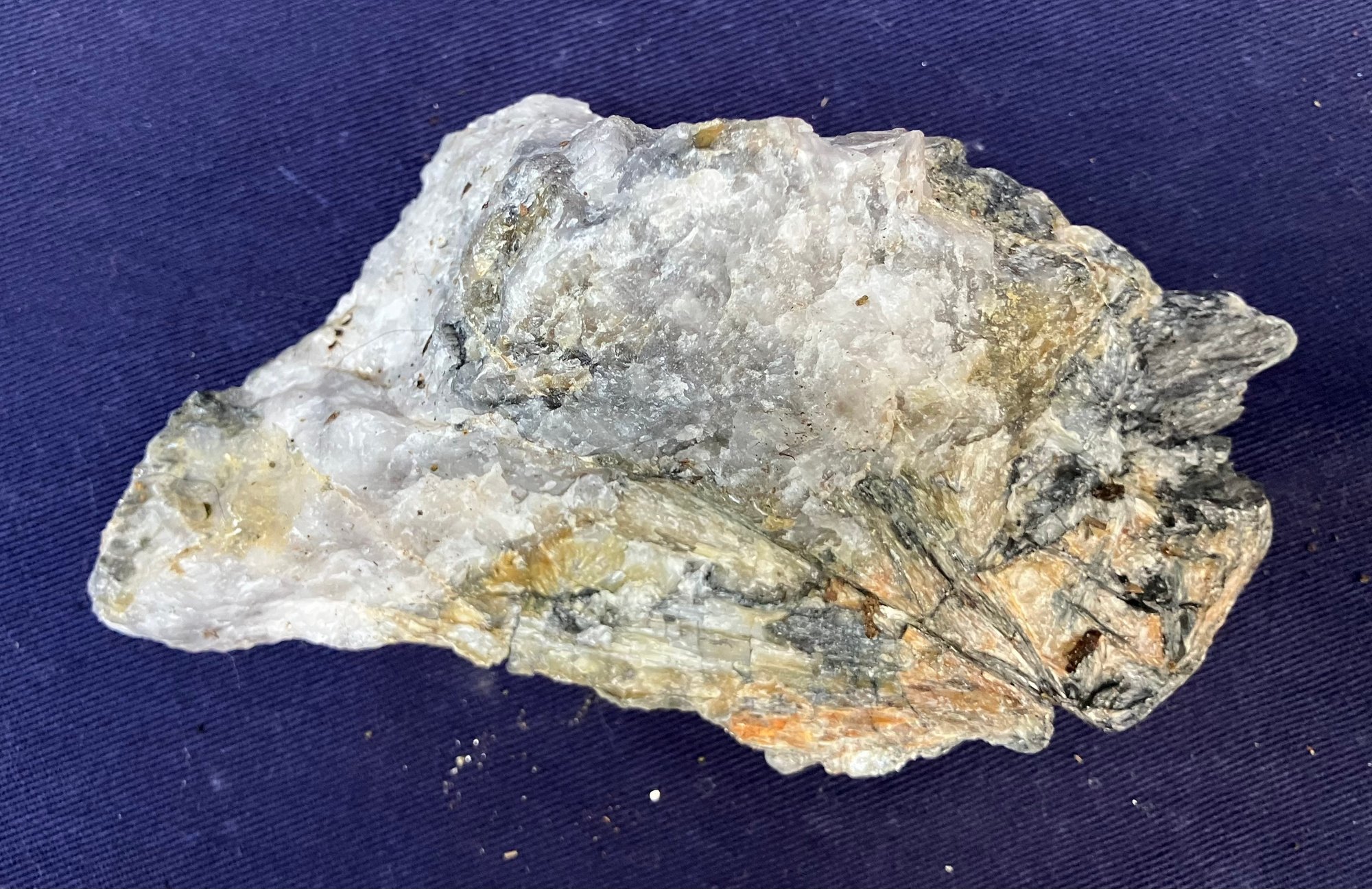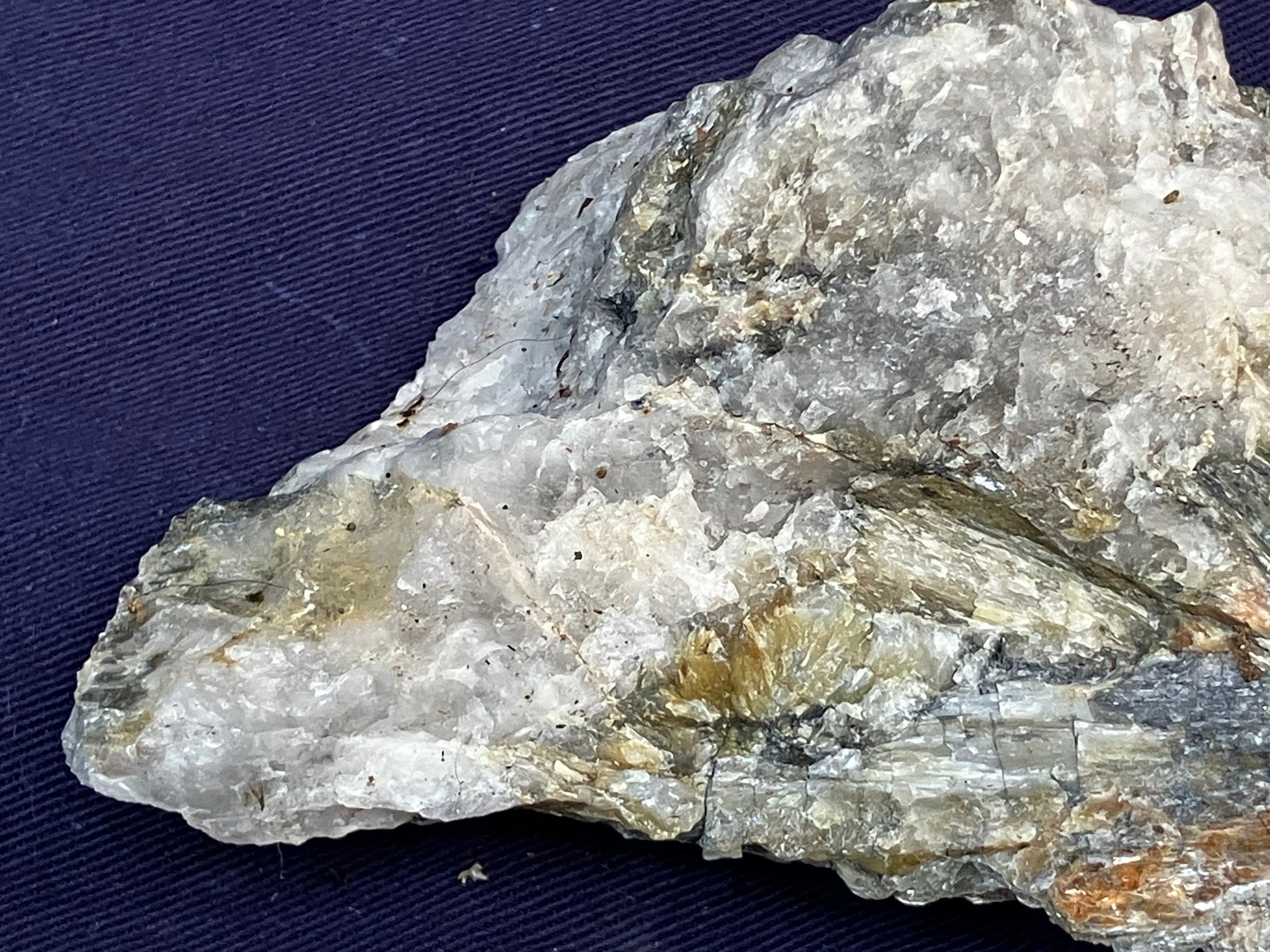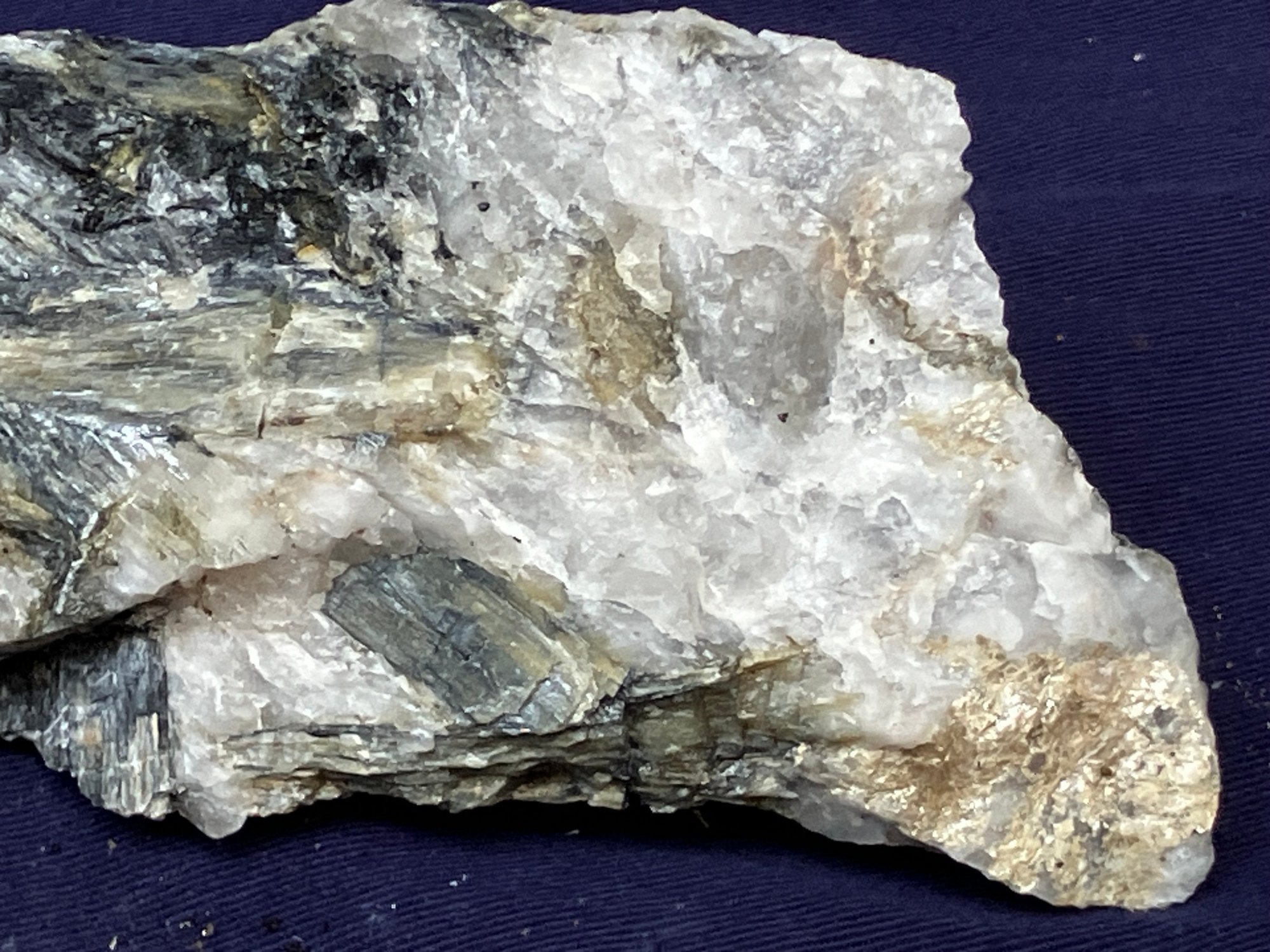 New Hampshire kyanite on Quartz matrix. From a new prospect in New Hampshire. Measures: 1 3/4” tall x 2 3/4” wide x 5” long. Weighs: 10 ounces.