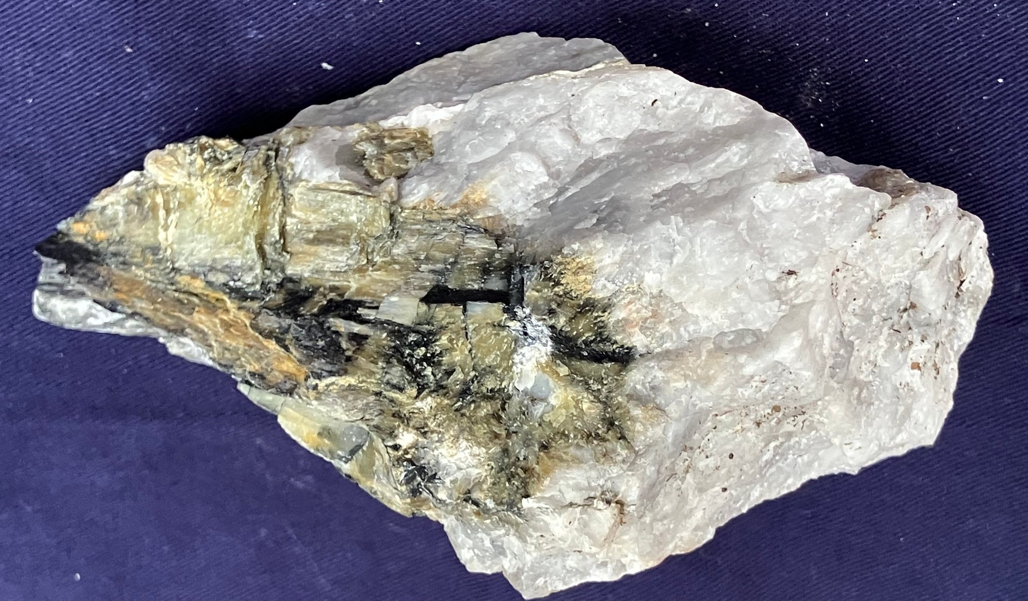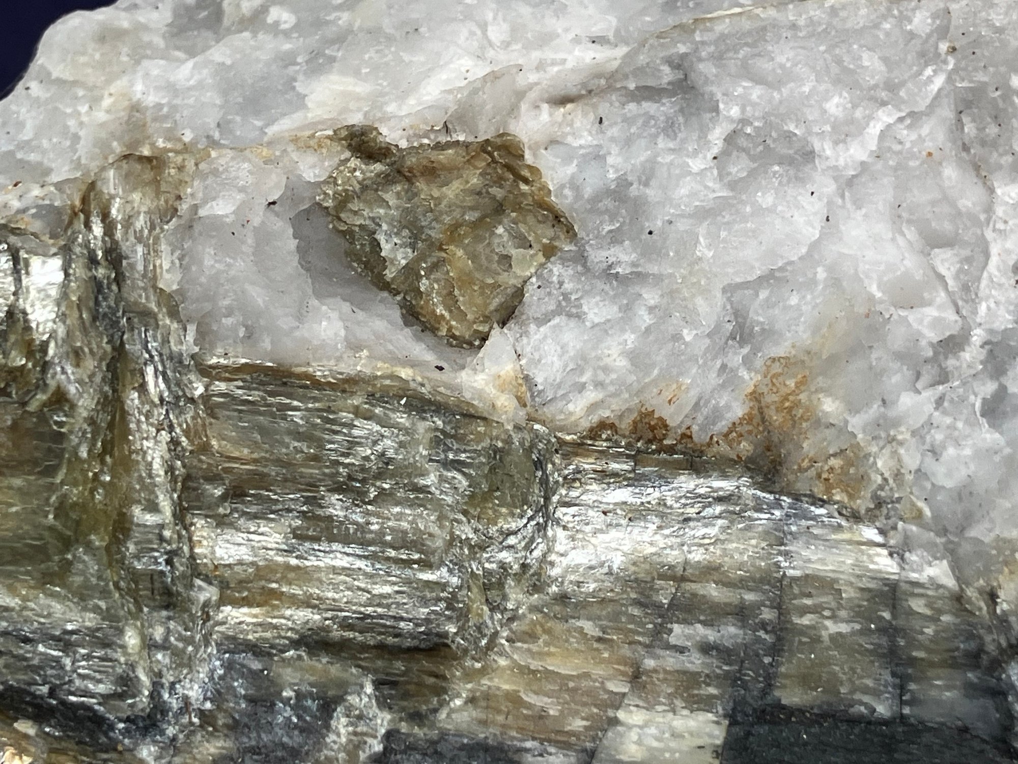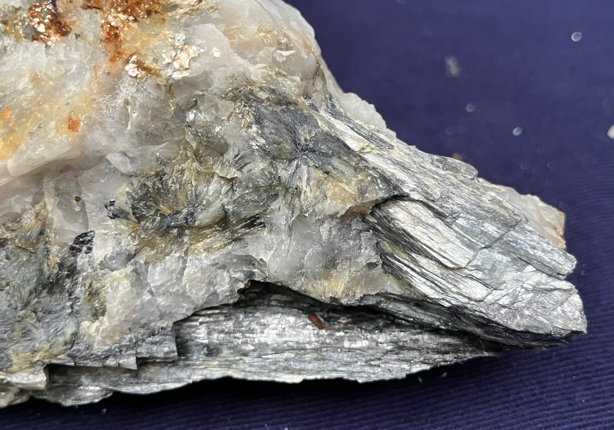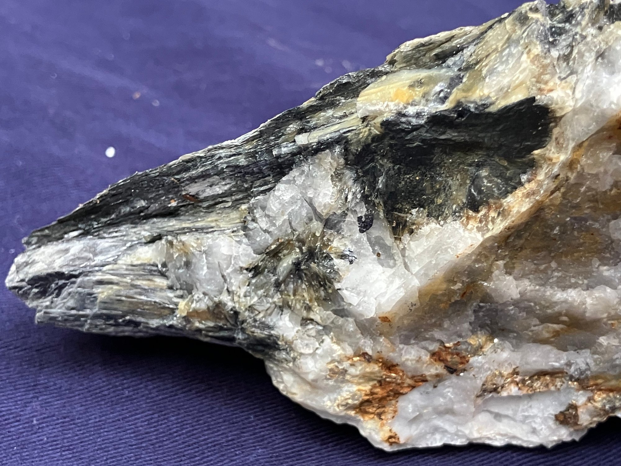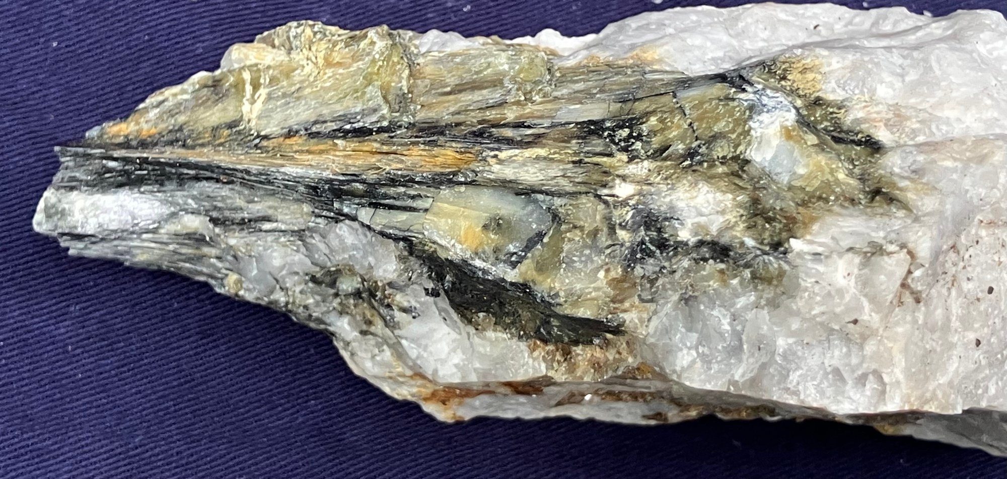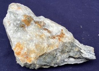 New Hampshire Kyanite On Quartz Matrix Specimen. Measures: 2 1/2” tall x 5 1/4” long x 3 3/4” wide. Weighs: 1 pound 2 ounces.