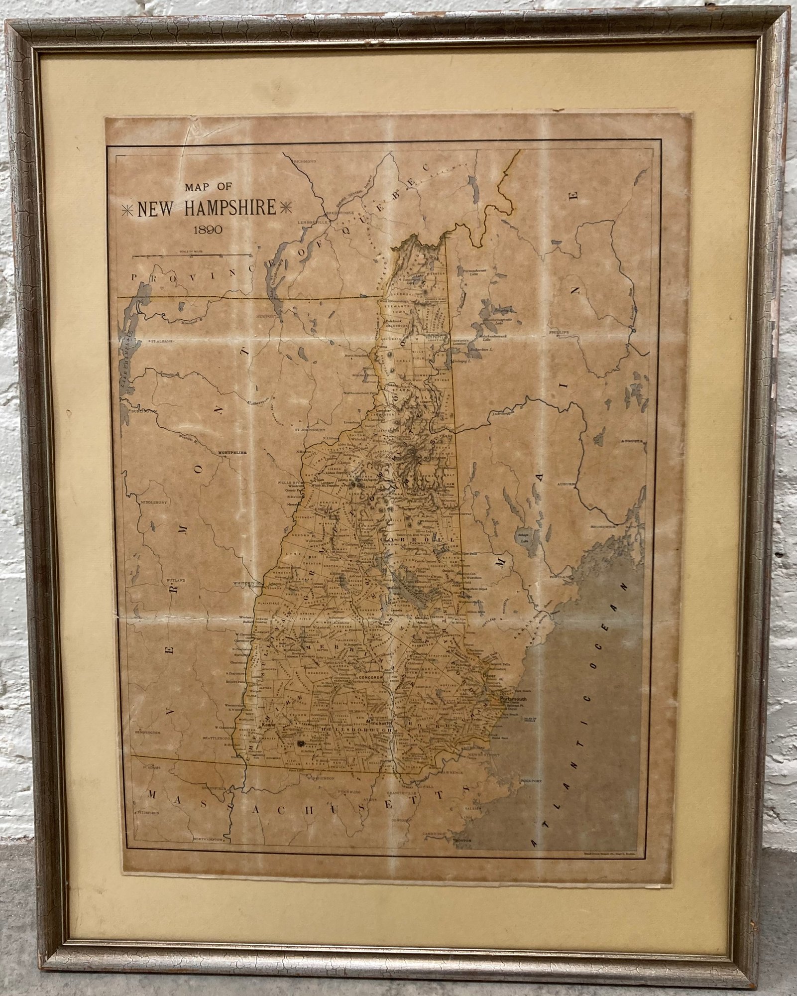 New Hampshire Map 1890. Frame dimensions: 27 1/2” tall x 21 1/4” wide. Map dimensions: 22” tall x 16 1/4” wide. Condition: See photos.