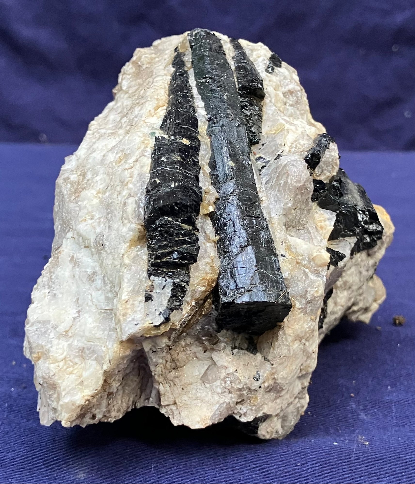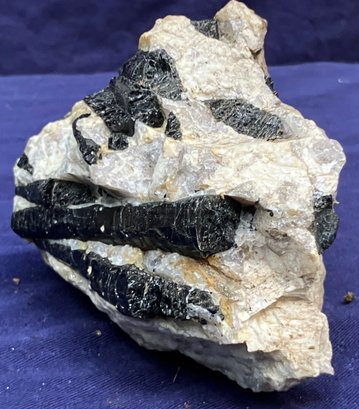 Nice splay of naturally faceted tourmaline crystals on a Quartz matrix. Measures: 3 1/2” tall x 3 1/4” wide x 4: long. Weighs: 1 pound 6 ounces.