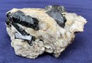 New Hampshire schorl tourmaline splay. Crystals rehealed with Felspar. Measures: 1 3/4” tall x 1 3/4” wide x 3 1/2” long. Weighs: 6.3 ounces.