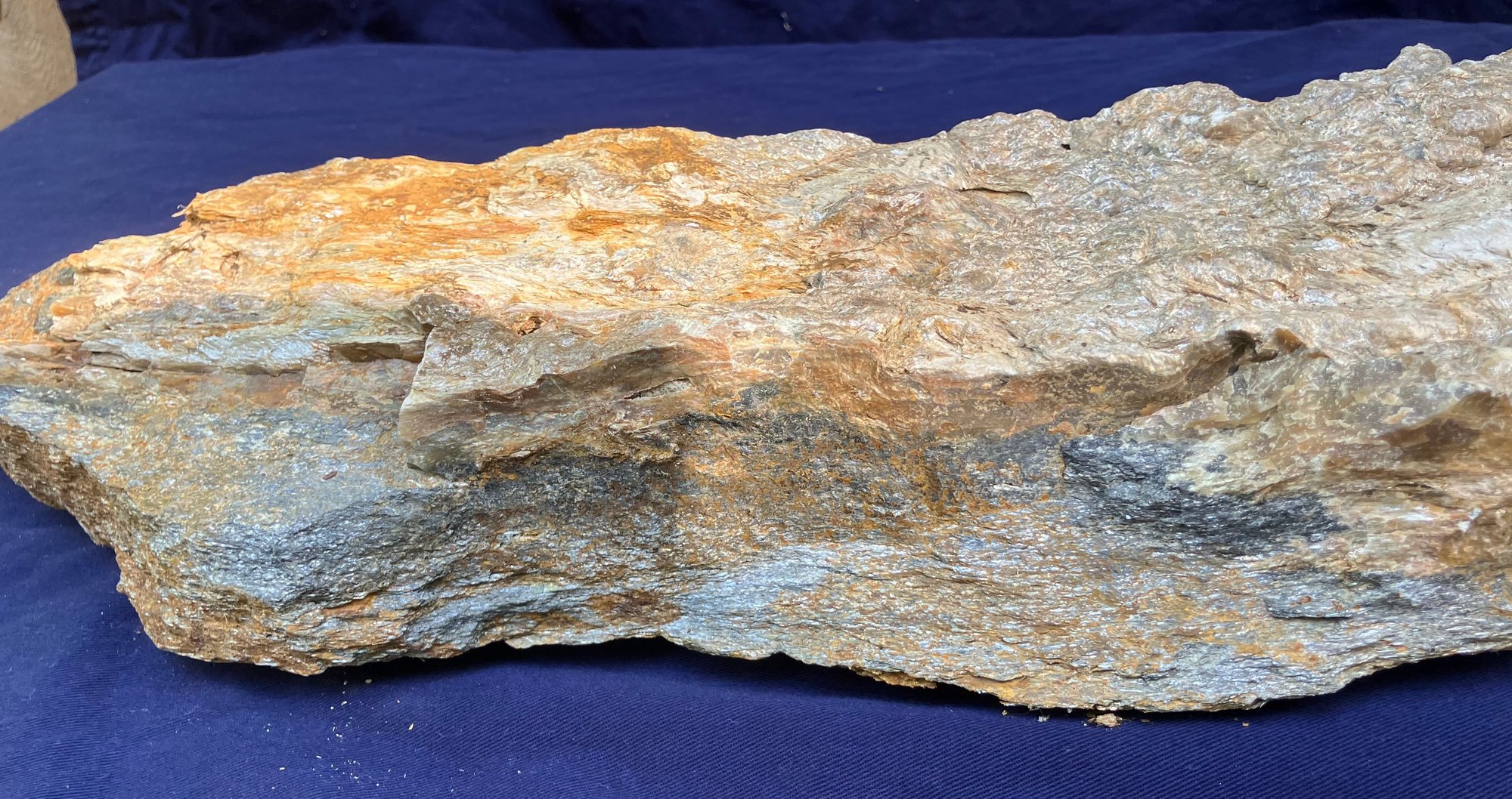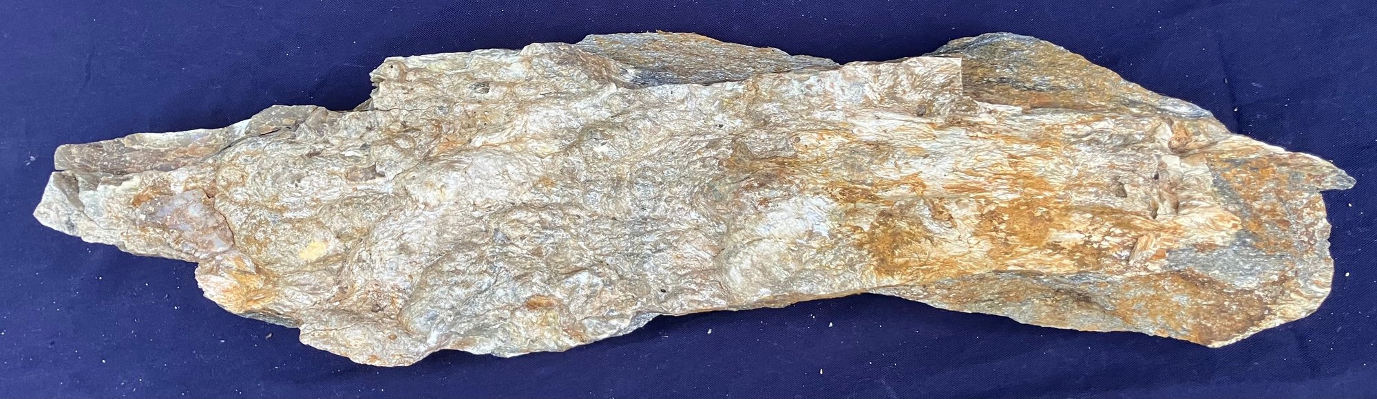 New Hampshire soapstone with Muscovite. Measures: 3 1/4” tall x 6” wide x 22 1/4” long. Weighs: 17 pounds 2 ounces.