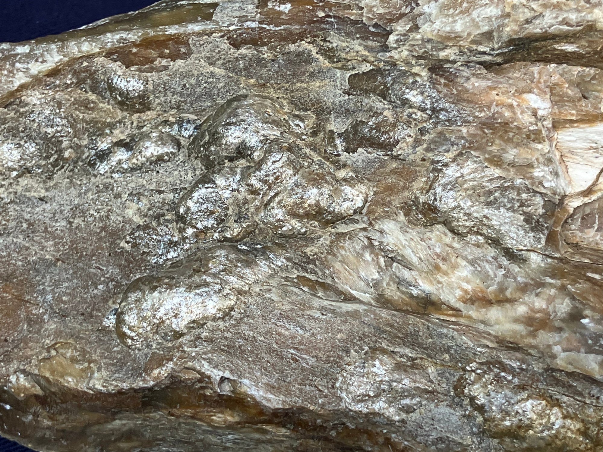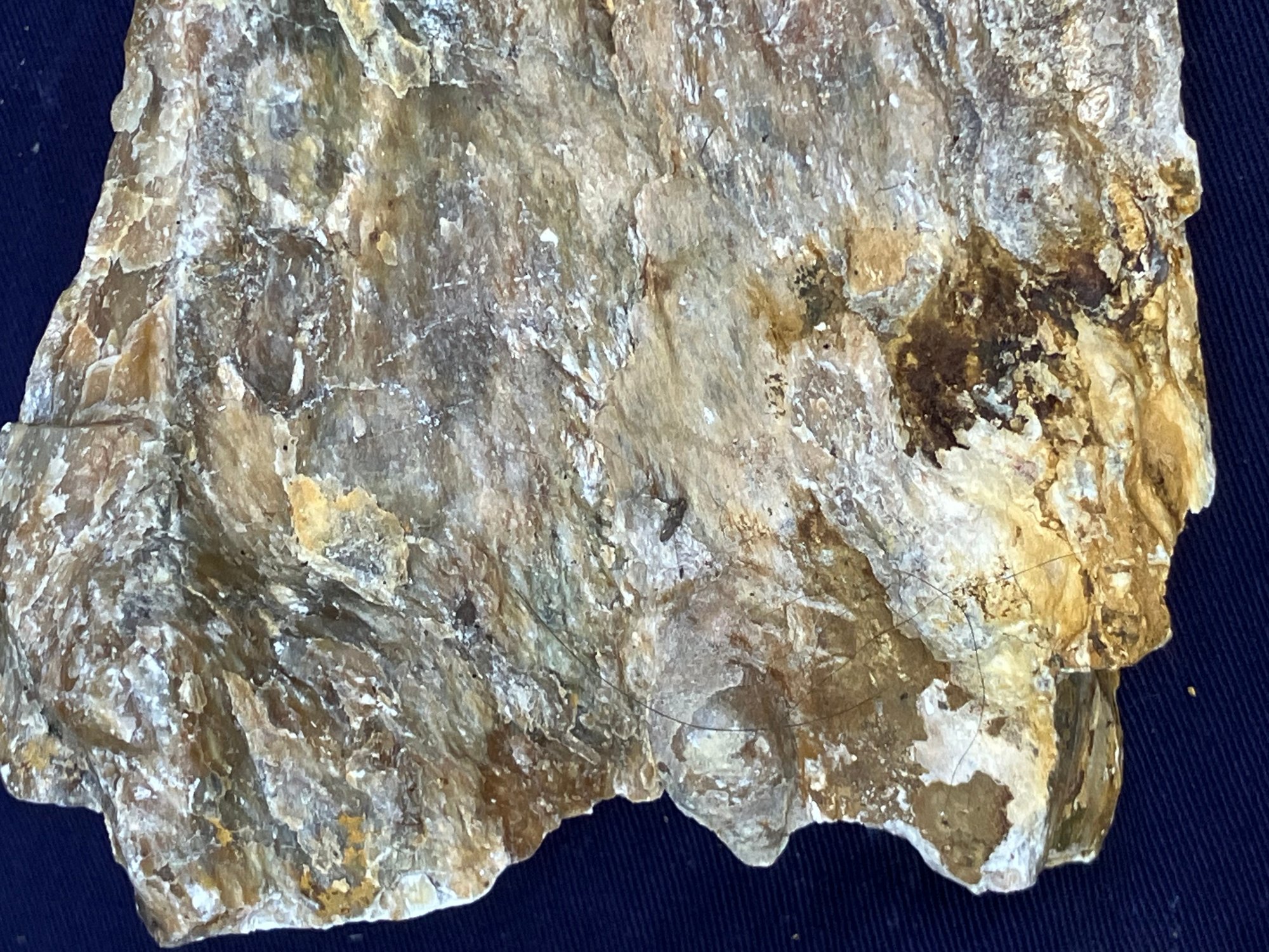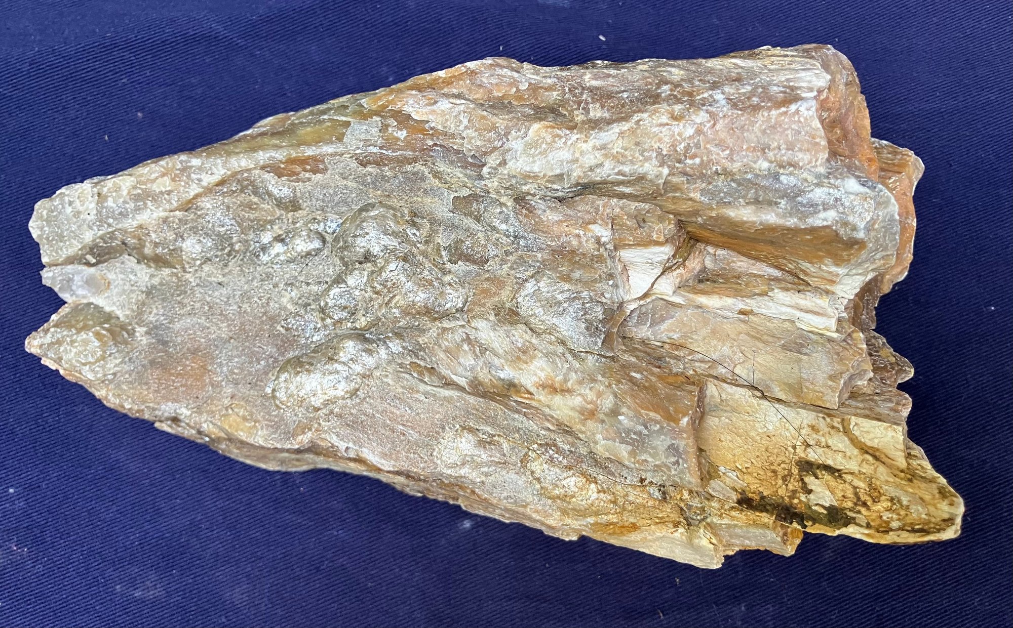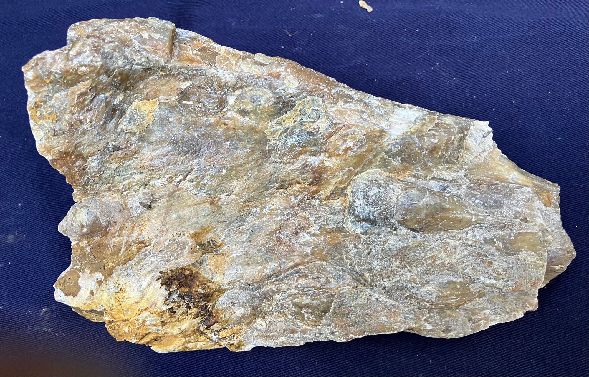 New Hampshire soapstone with Muscovite. Measures: 3” tall x 4” wide x 7 1/2” long. Weighs: 2 pounds 2 ounces.
