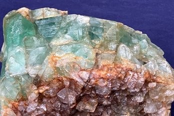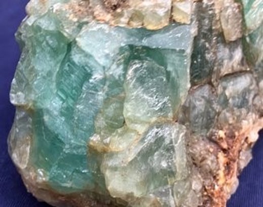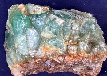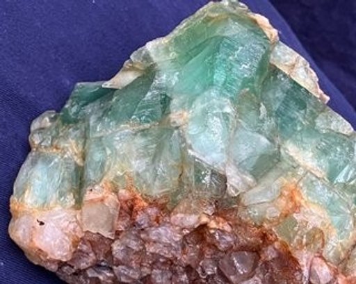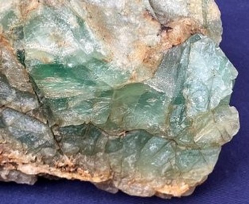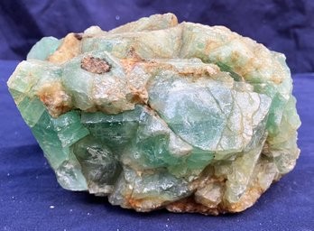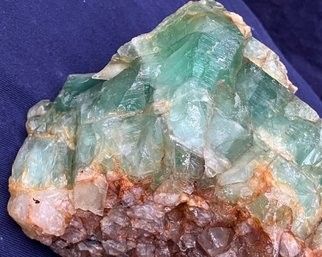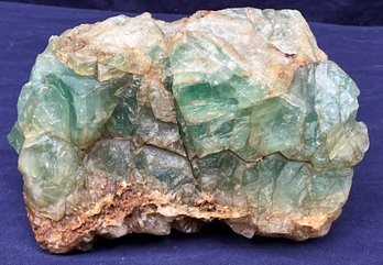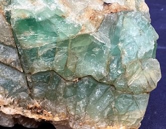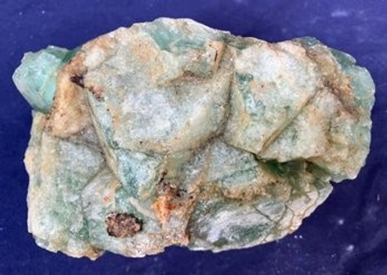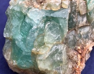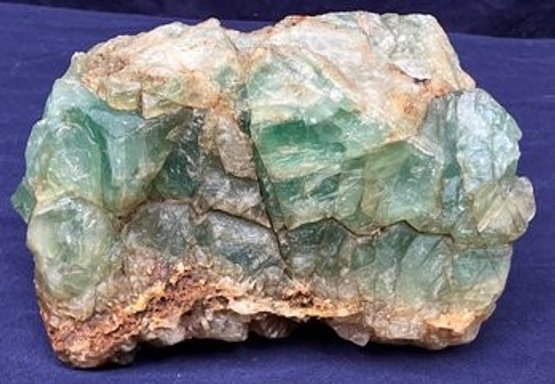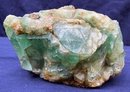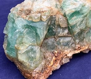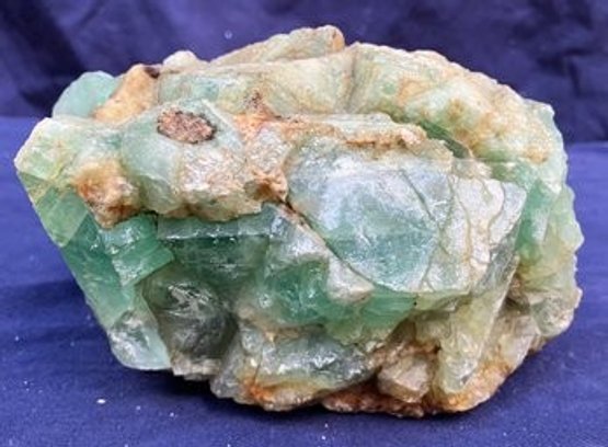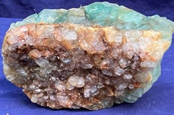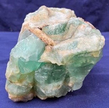 Large cabinet specimen. It is a nice large example of Wise Mine fluorite. Octahedral growth is shown on three sides. One side is etched. Another side has quartz crystals. And it shows good octahedral characteristics. Very nice color band through the center. Measures: 3 1/2” tall x 3 1/2” wide x 5 3/4” long. Weighs: 3 pounds 1 ounce.