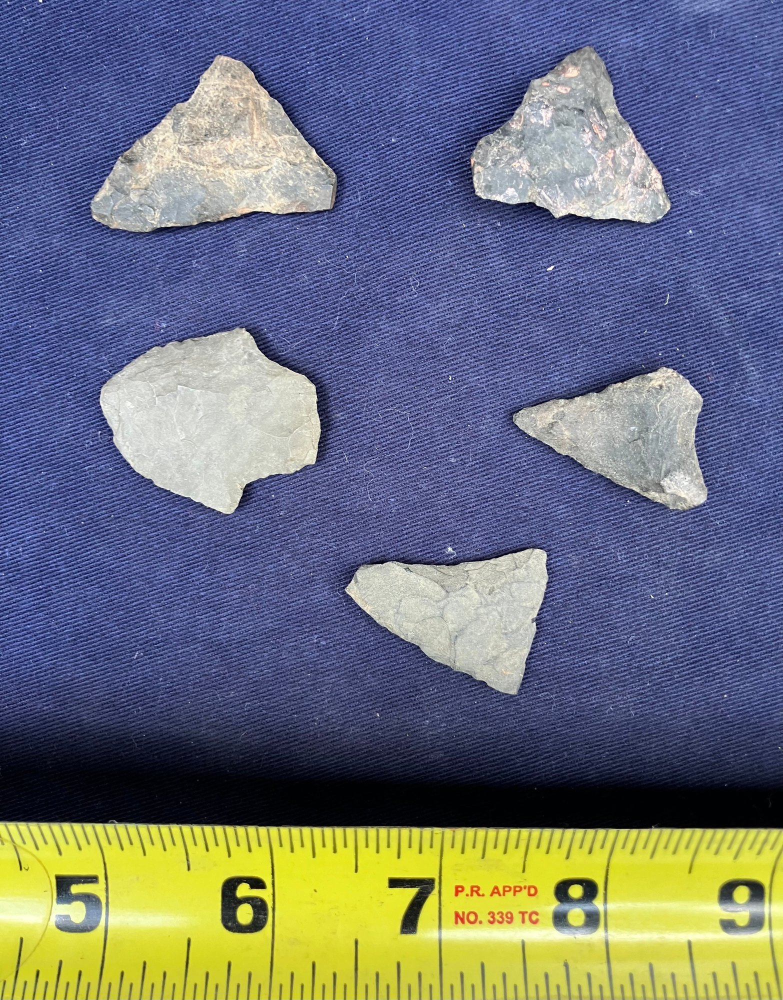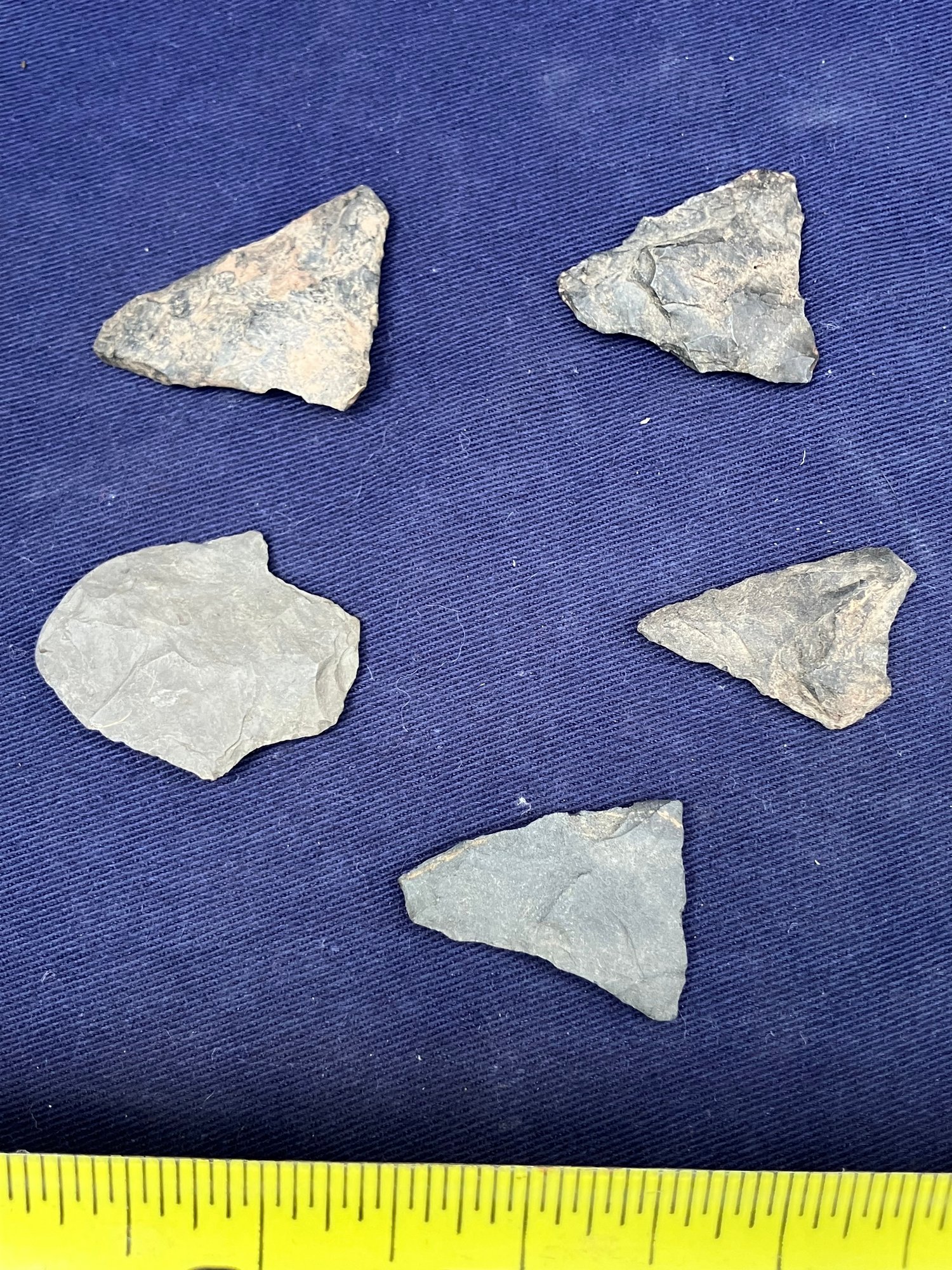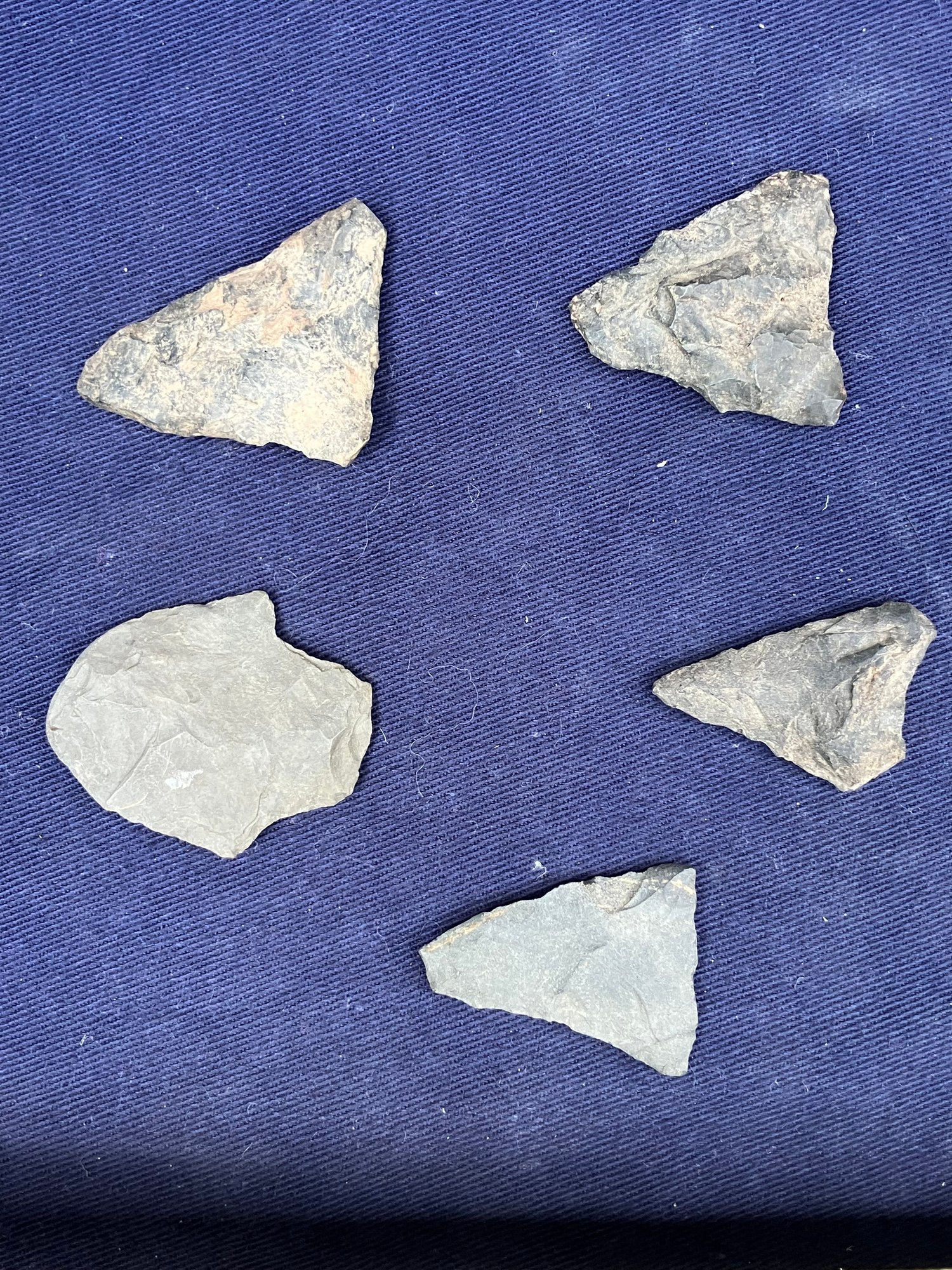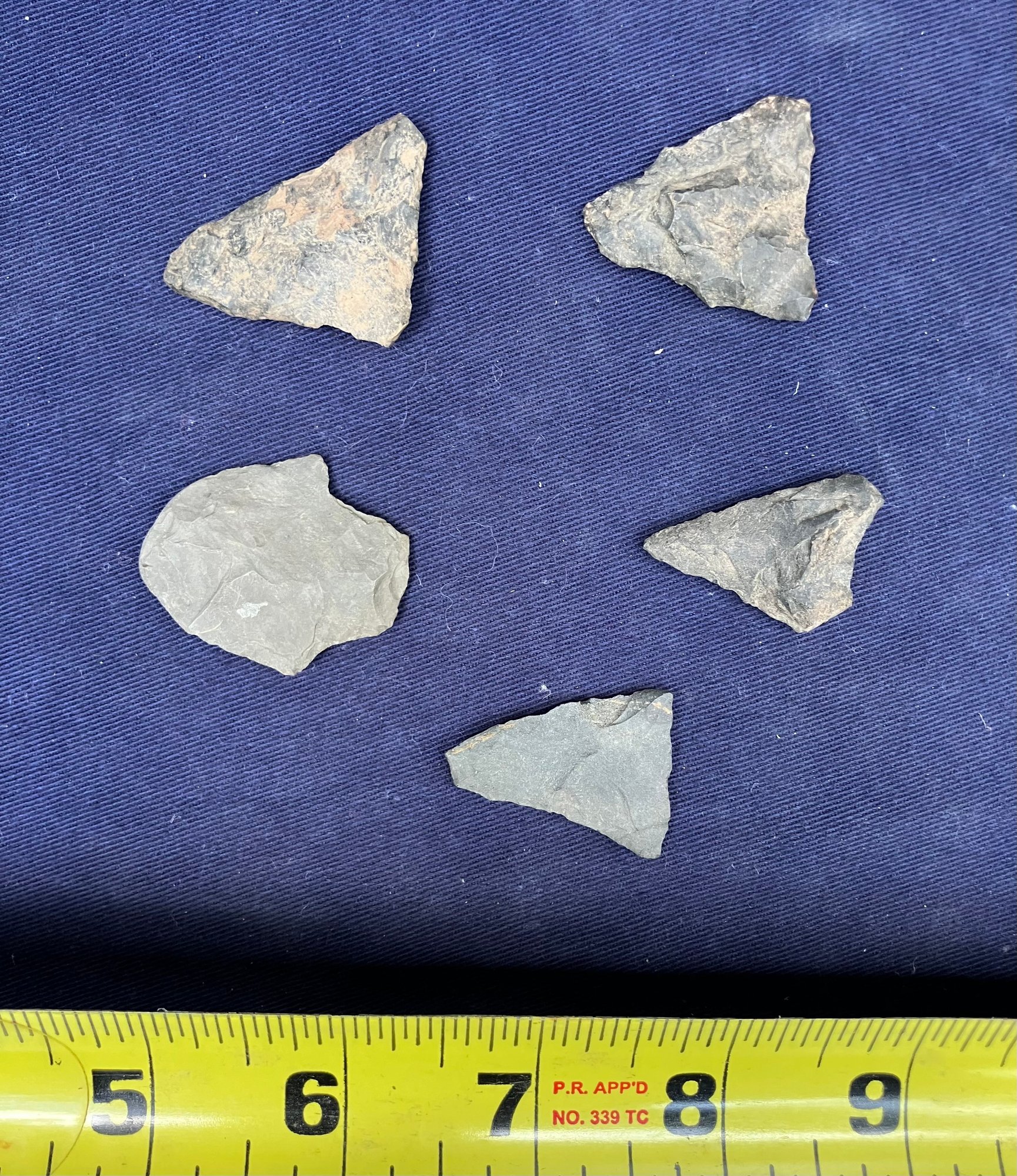 Found at a Native American dig site. Made from flint and Chirt. They are bi-facial.