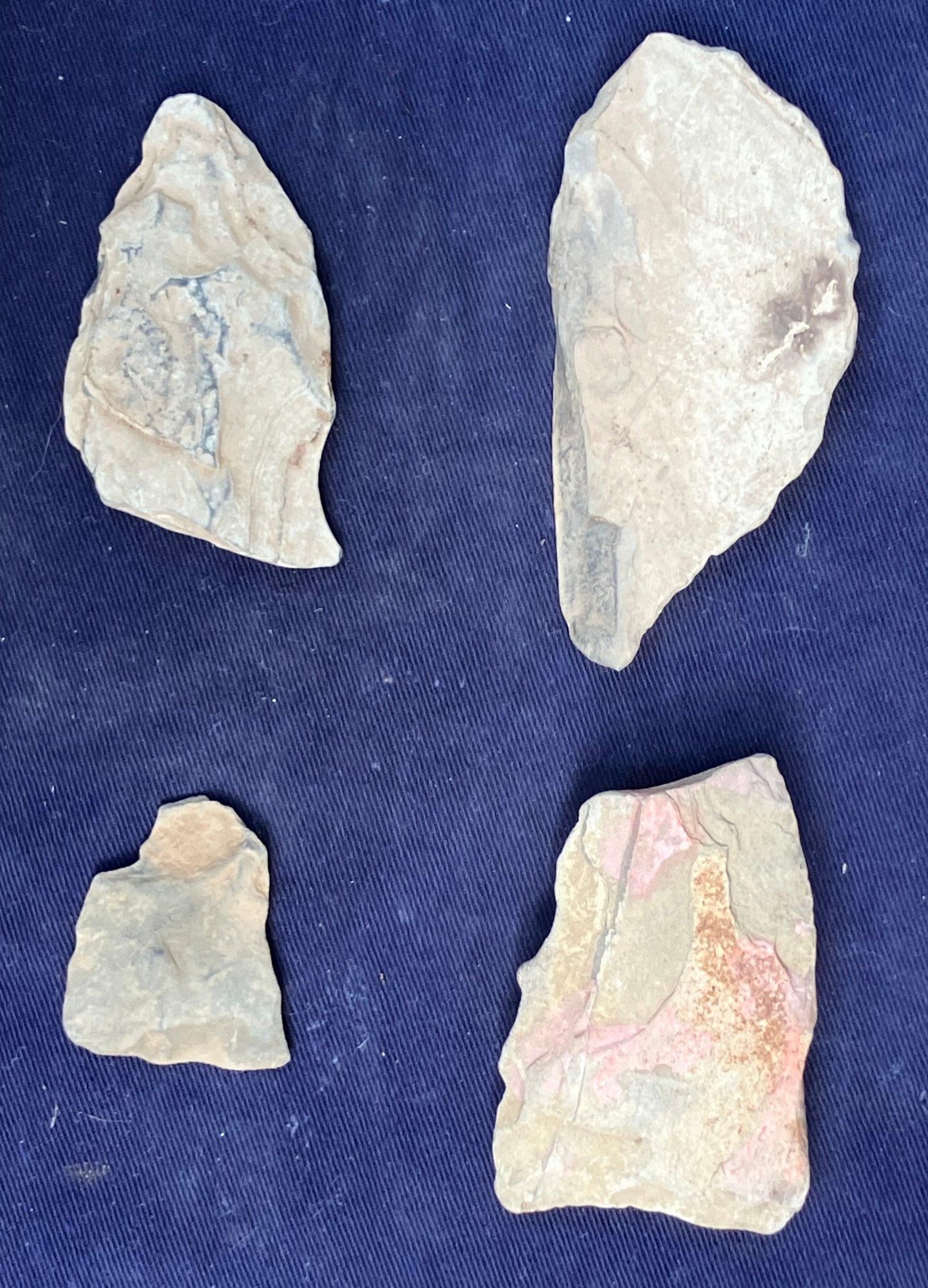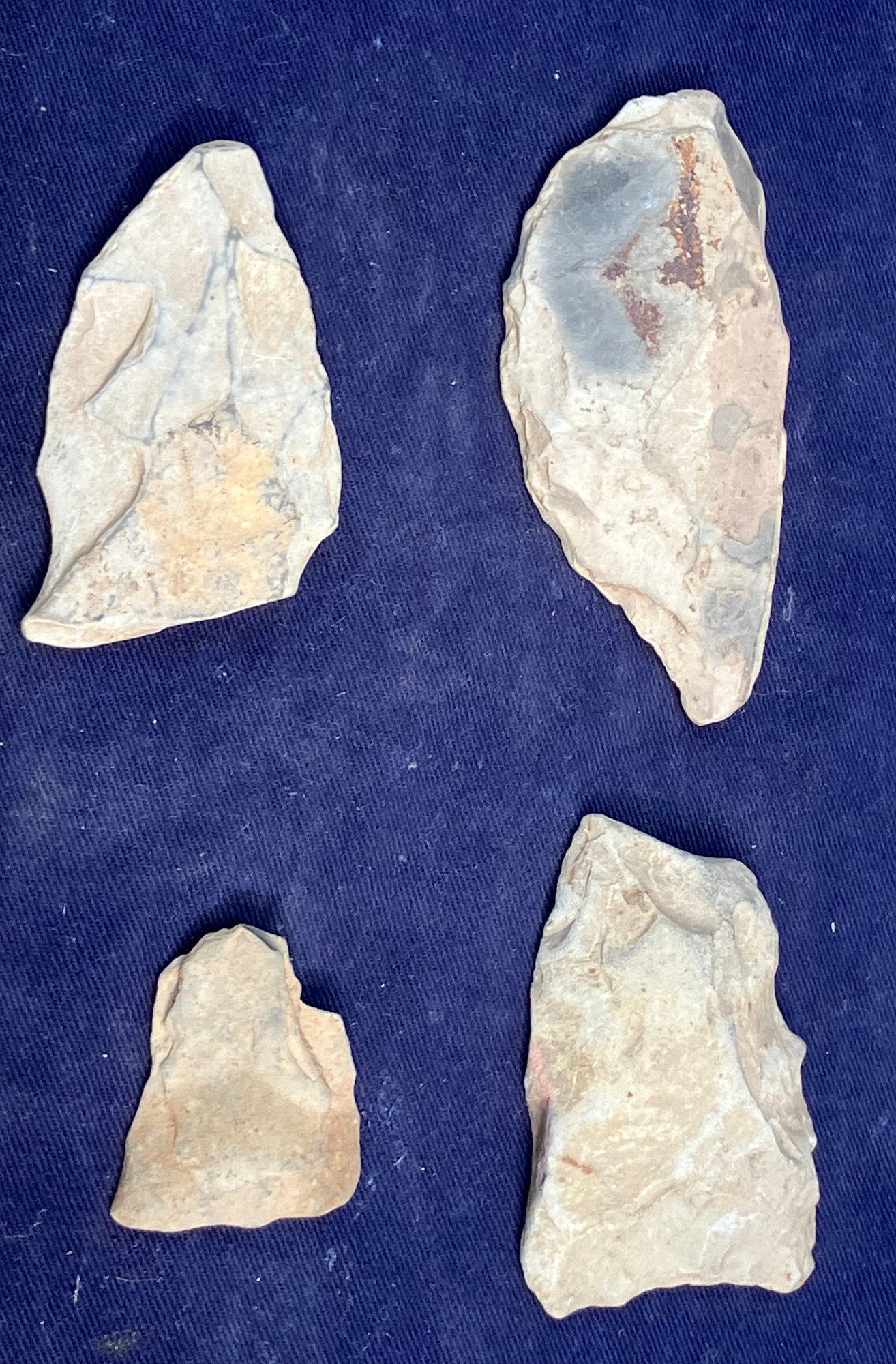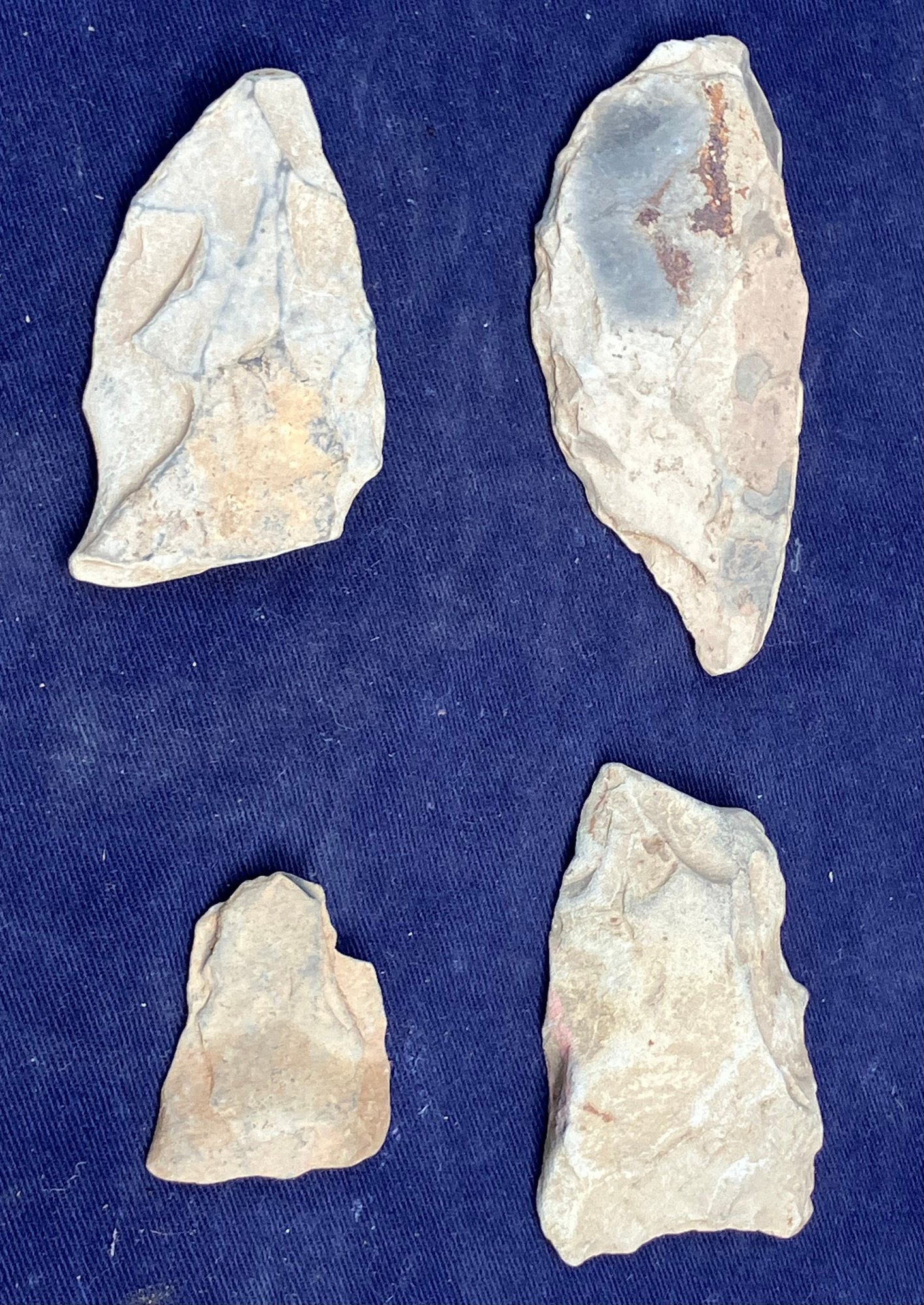 Found at a Native American dig site. Two are single-faced blades and two are Omni-faced.