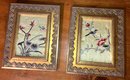 Framed pair of Oriental silks. Dimensions: frame: 10 1/2” tall x 8 1/2” wide & silks: 7 3/4” tall x 5 3/4” wide. Good condition.