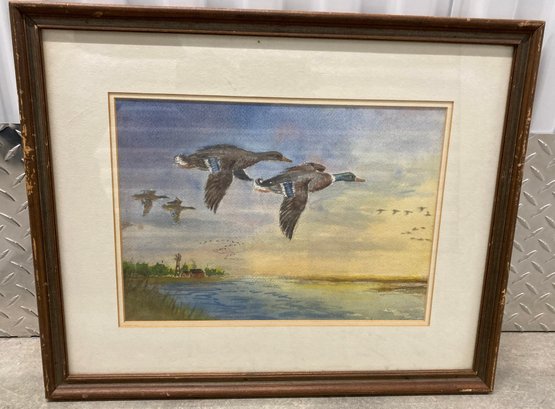 Framed Print. Geese scene. Dimensions are: 11” tall x 15” wide. Good condition.
