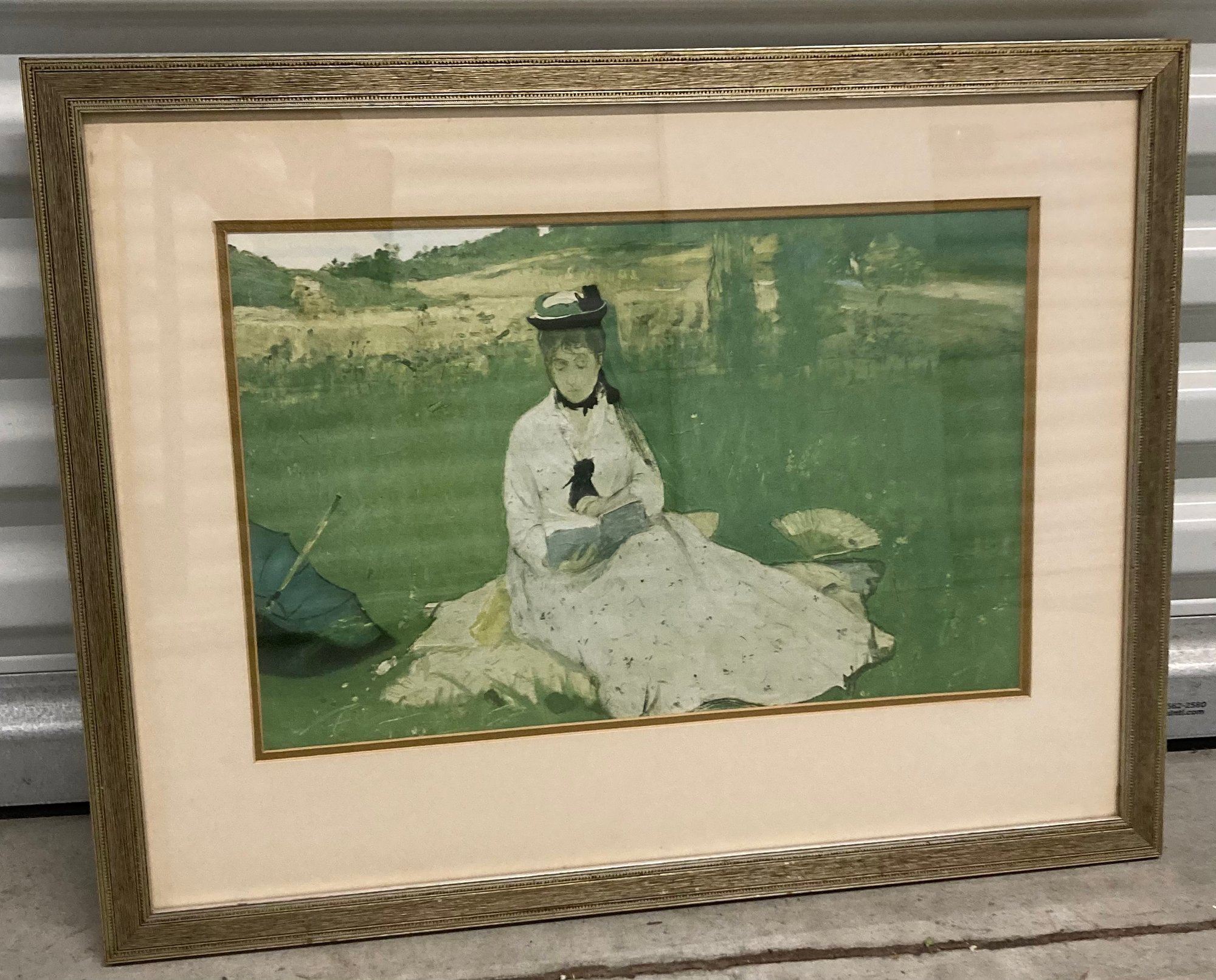 Framed Print Of Woman Sitting In Field Reading A Book.