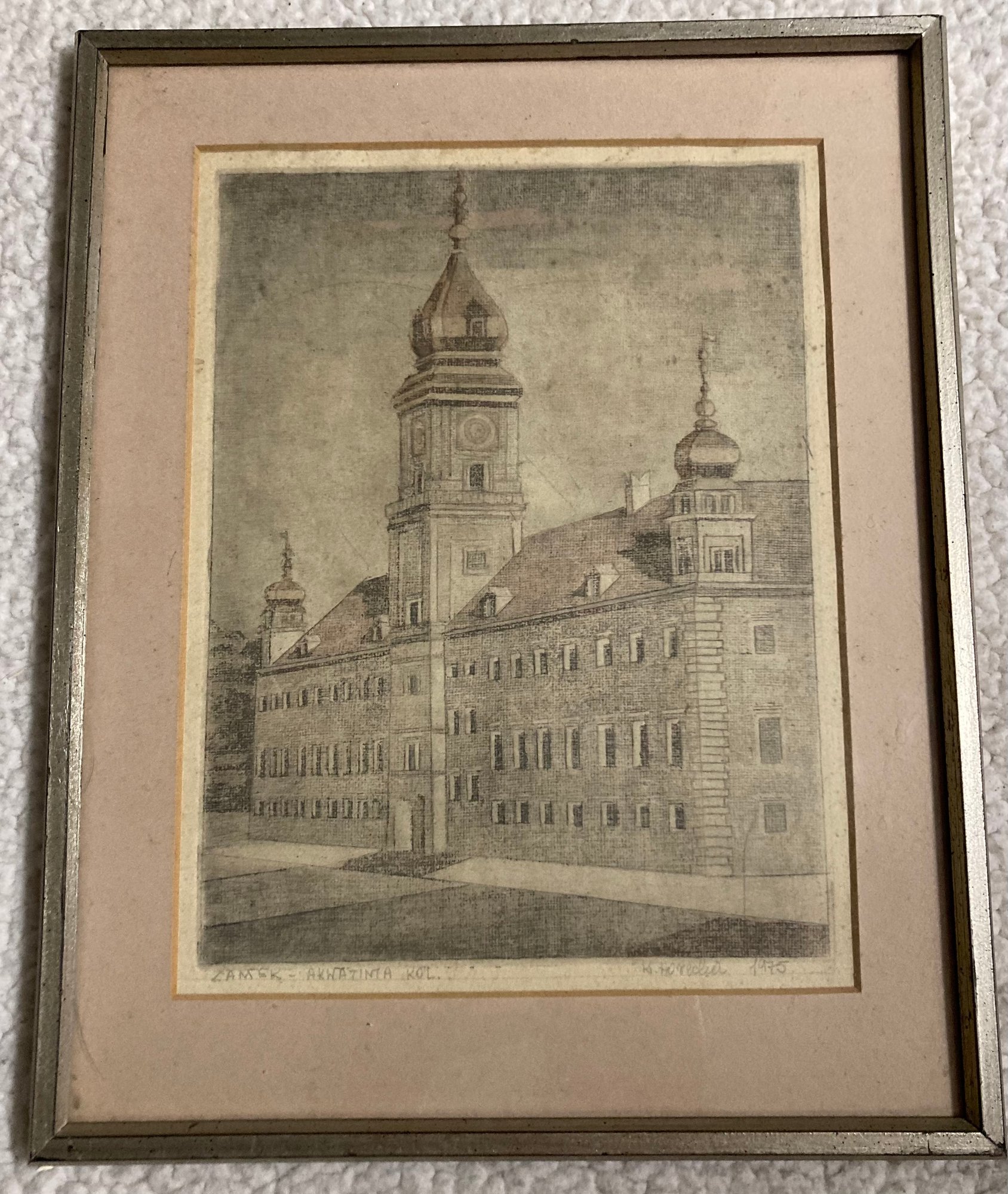 Framed Print Signed Zamek-Akwatinta Kol. K. Hozeclich 1975. Dimensions are: 10” tall x 7 1/2” wide. Condition: See photos.