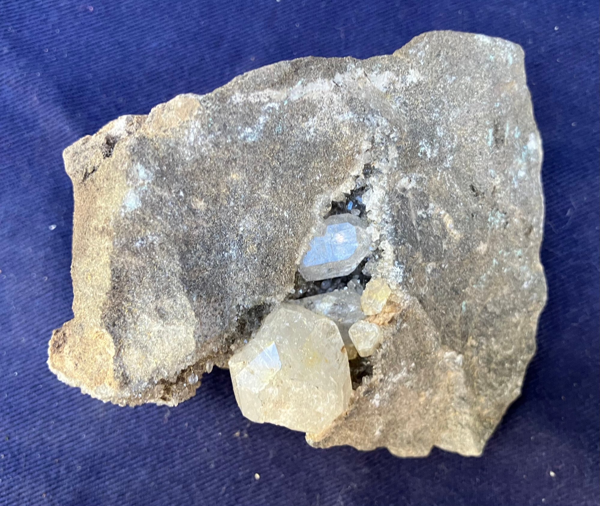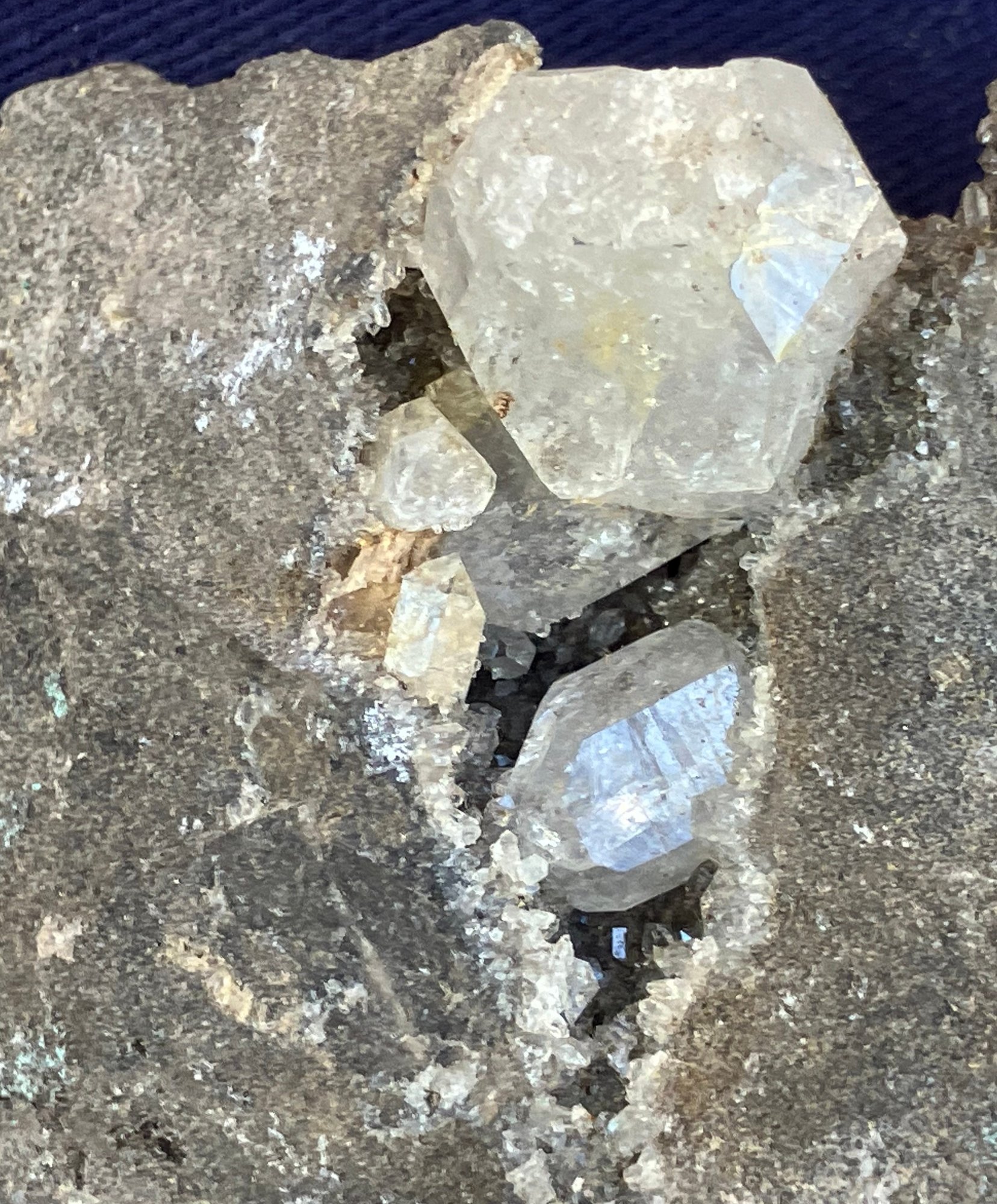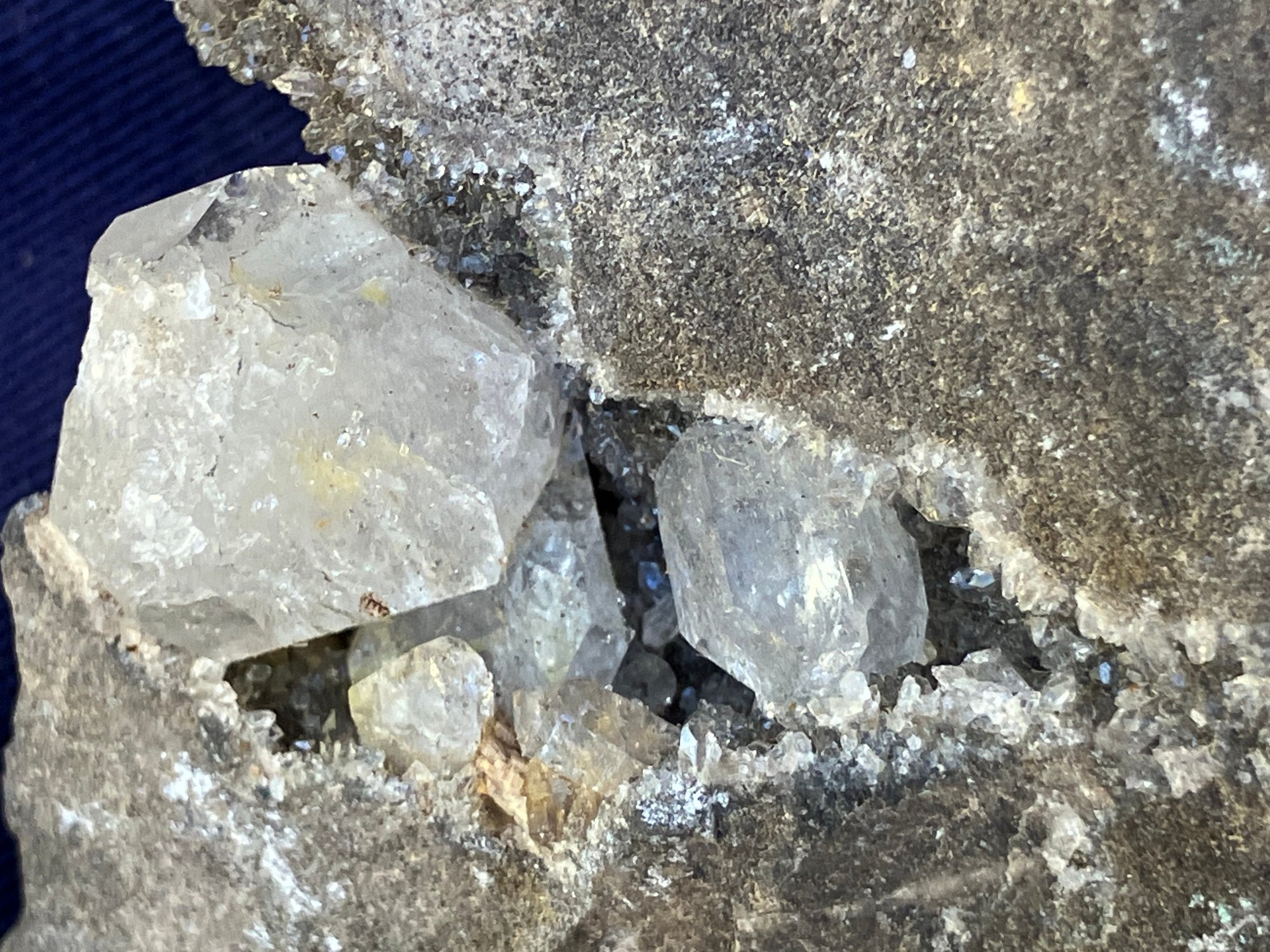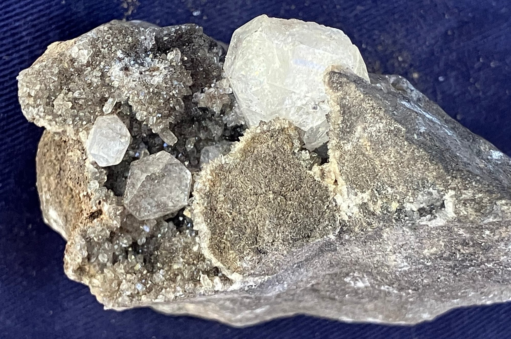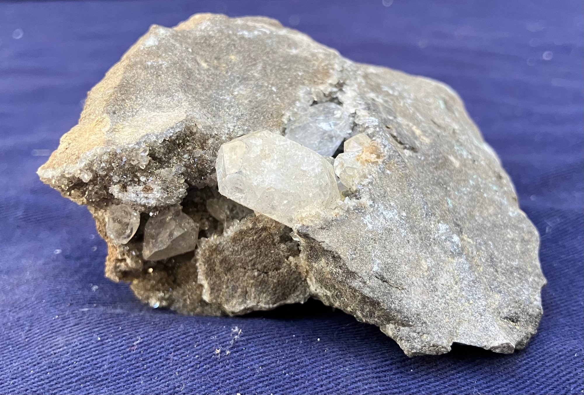 Nice cluster of Herkimer diamonds in small pocket of Dolomites. Measures: 1 1/2” tall x 2 1/2” wide x 3” long. Weighs: 6.6 ounces.