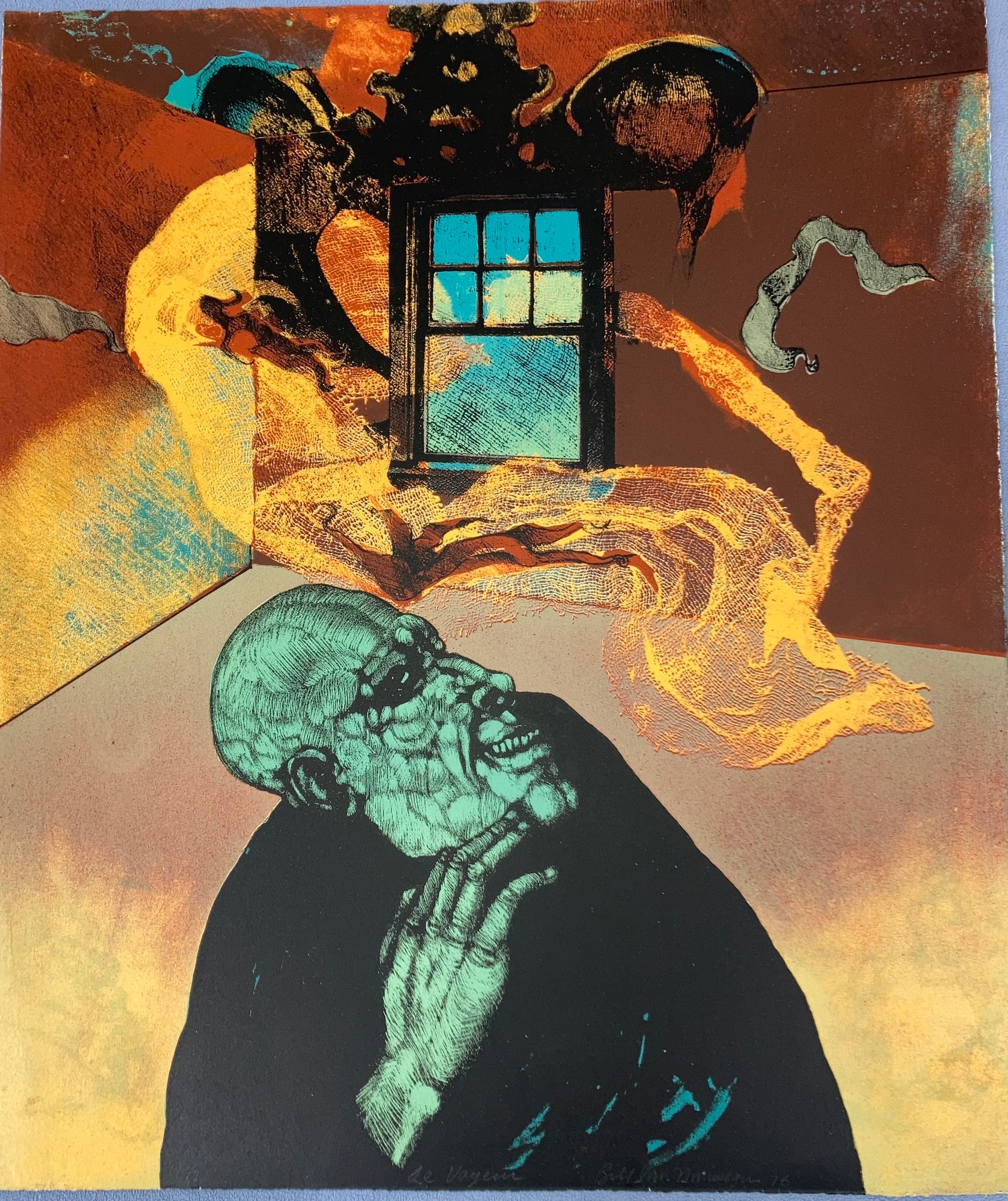 Le Voyeur signed by Bill 1976. Dimensions are: 23 1/2” tall x 20” wide. Condition: See photos.