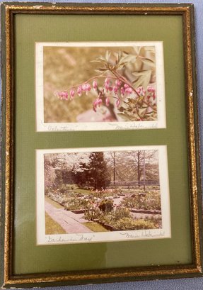 Lot of framed photos. “Valentine’s” and “Garden In May” signed by Marie Habernictzel? Frame dimensions are: 12” tall x 8 1/2” wide. Photo dimensions: 4” tall x 5 3/4” wide. Condition: See photos.