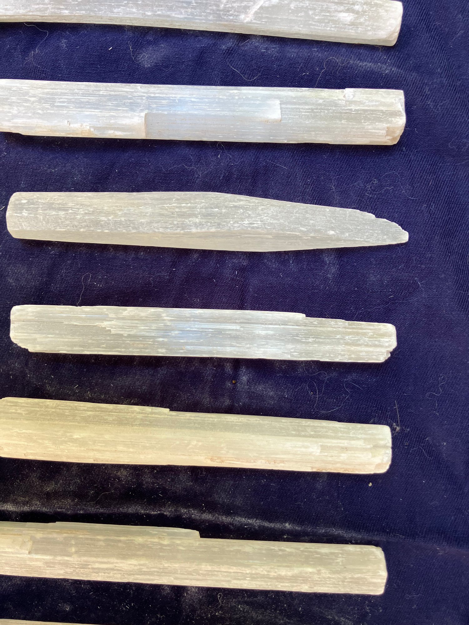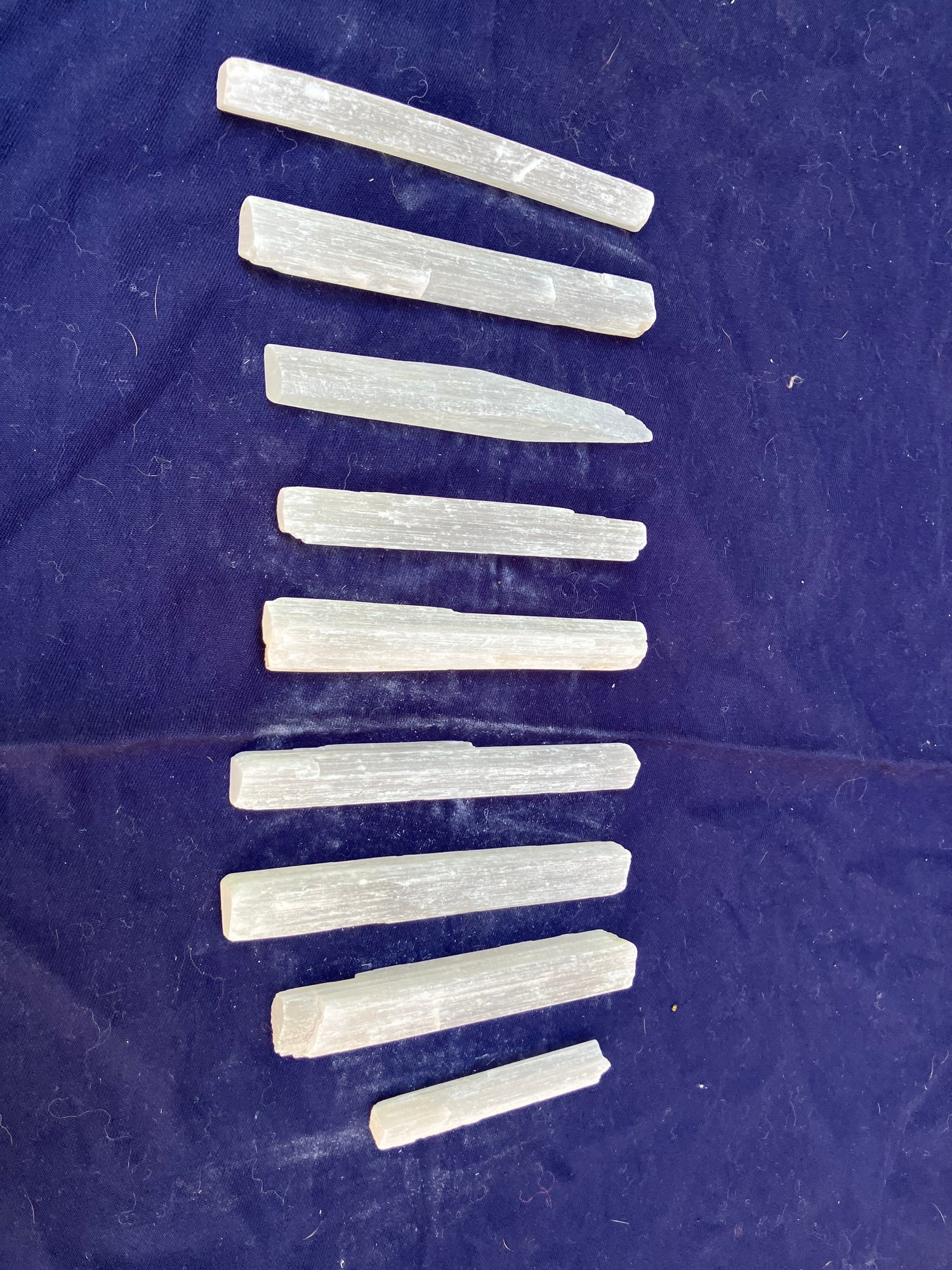 Lot of nine Selenite sticks/wands. Largest Messures: 5 1/2” long.