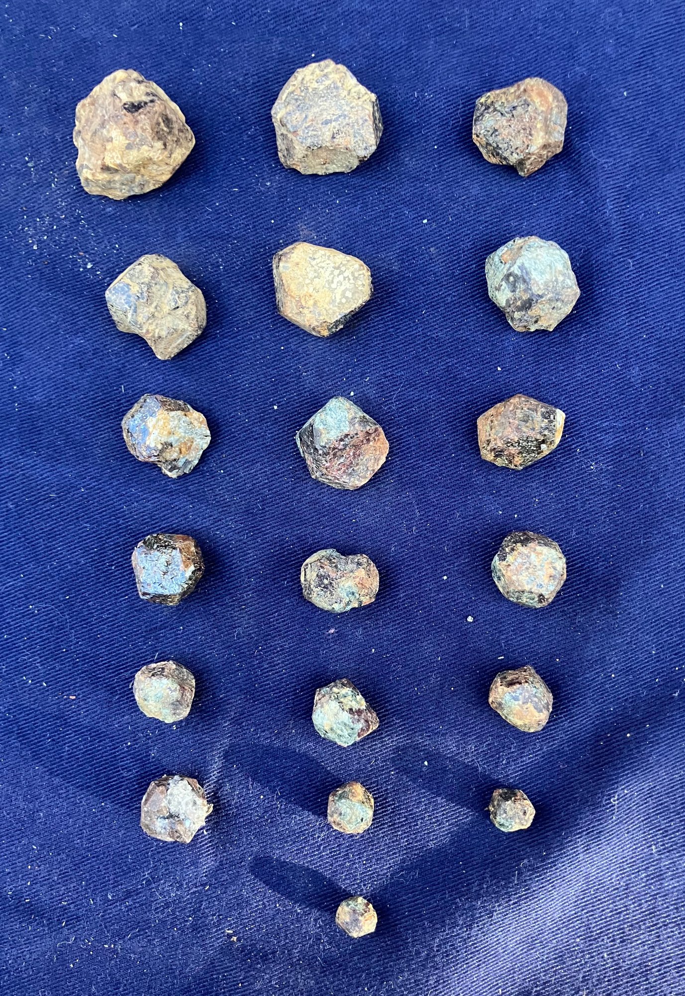 Various sizes of almandine garnets from Gilsum, NH. Largest garnet measures: 1” wide x 1” long. Total weight: 3.9 ounces.