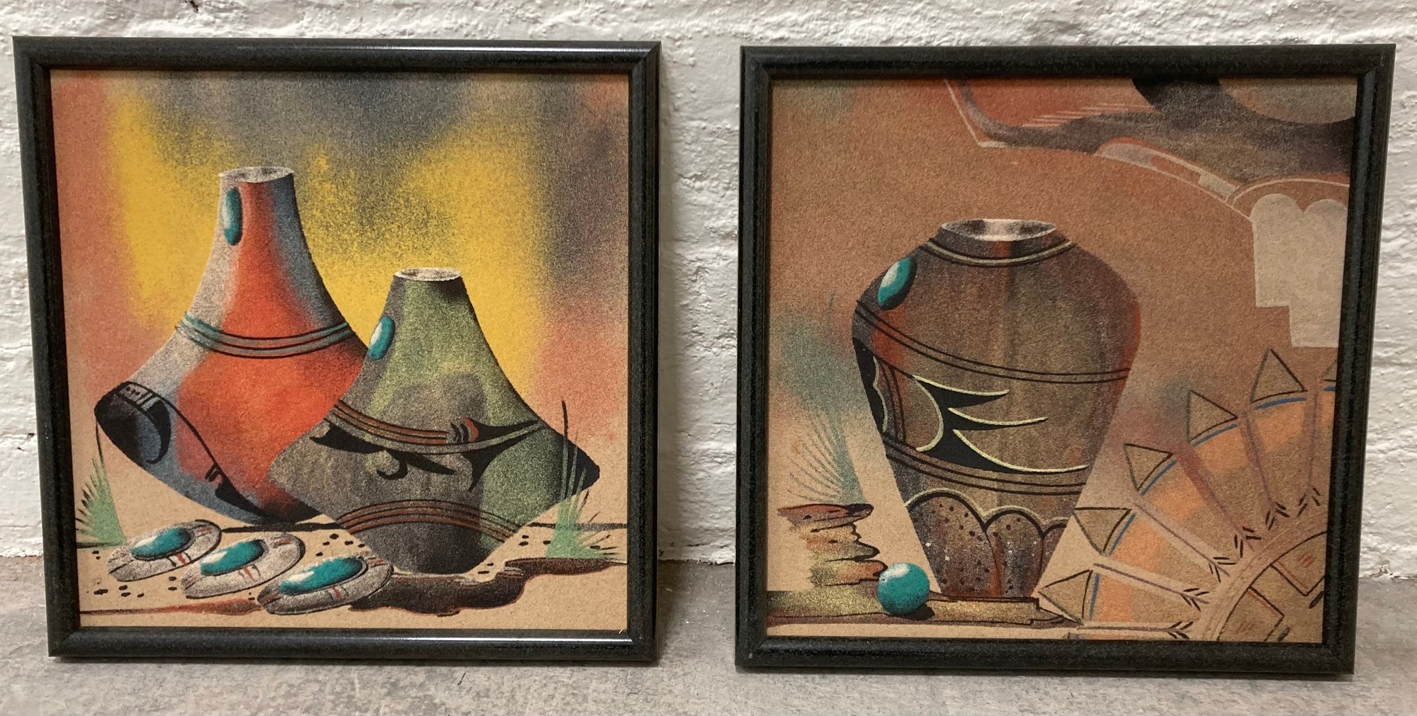 Lot Of Two contemporary Southwest Native American Sand Art. Dimensions for both are: 13” tall x X 13” wide. Condition: See photos.
