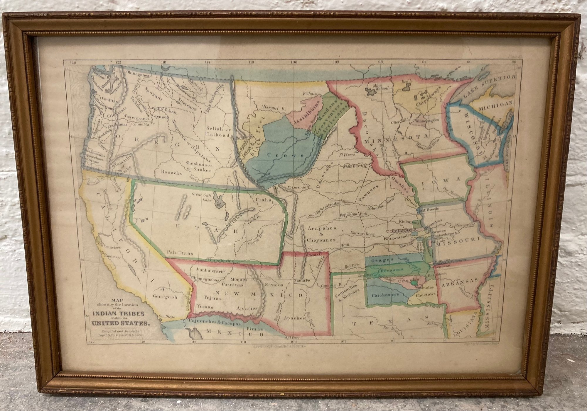 Map of Indian Tribes. Circa 1850’s. Dimensions are: 9 3/4” tall x 13 1/2” wide. Condition: See photos.