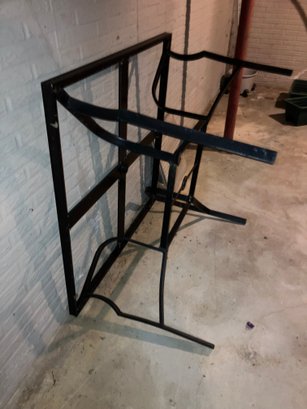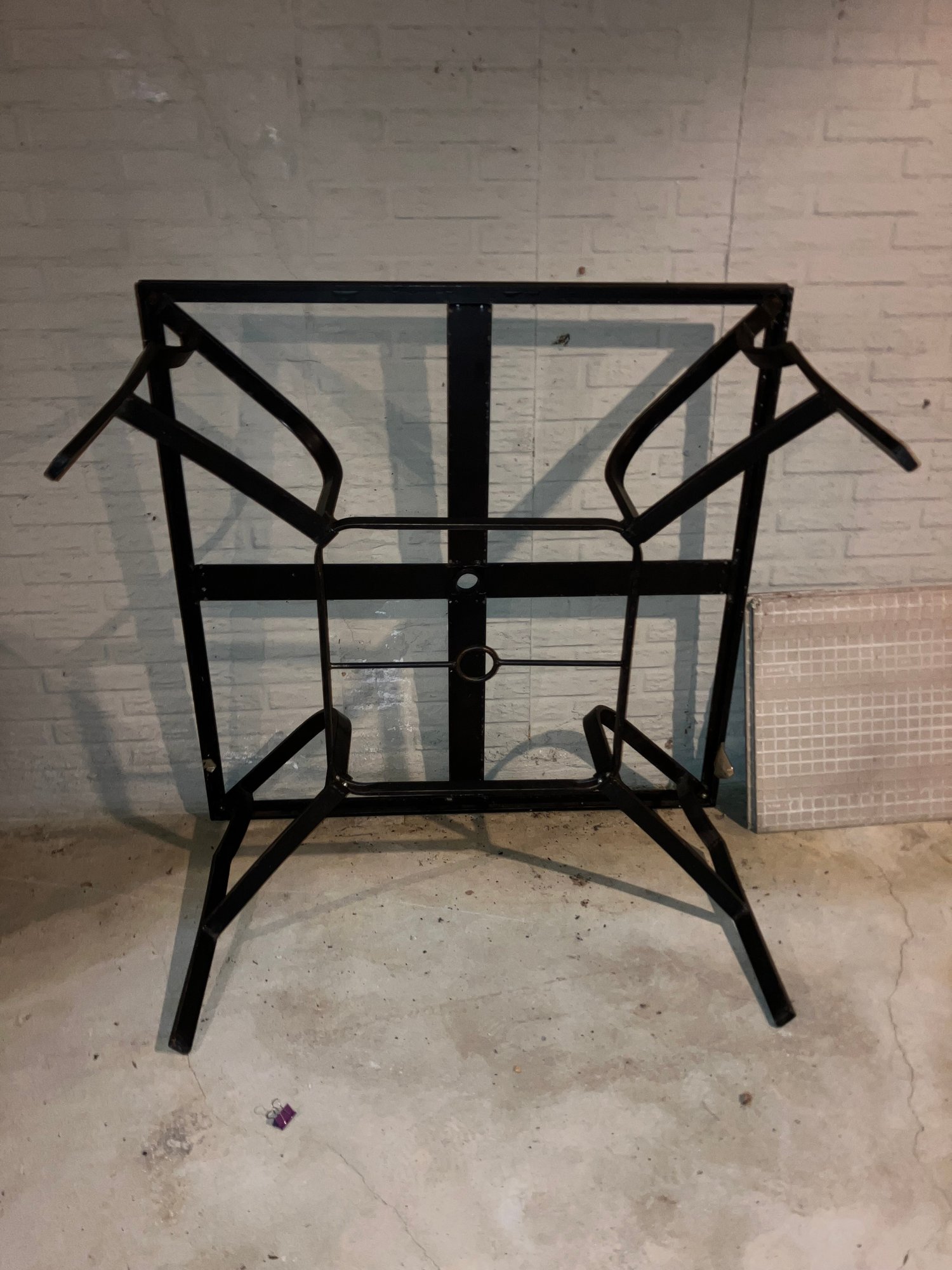 Metal table base. Does not have the top. Dimensions: 28” tall x 44” square. Good condition.