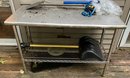 Metal table with shelf. Dimensions: 37 1/2” tall x 48” wide x 18” deep. Good condition.