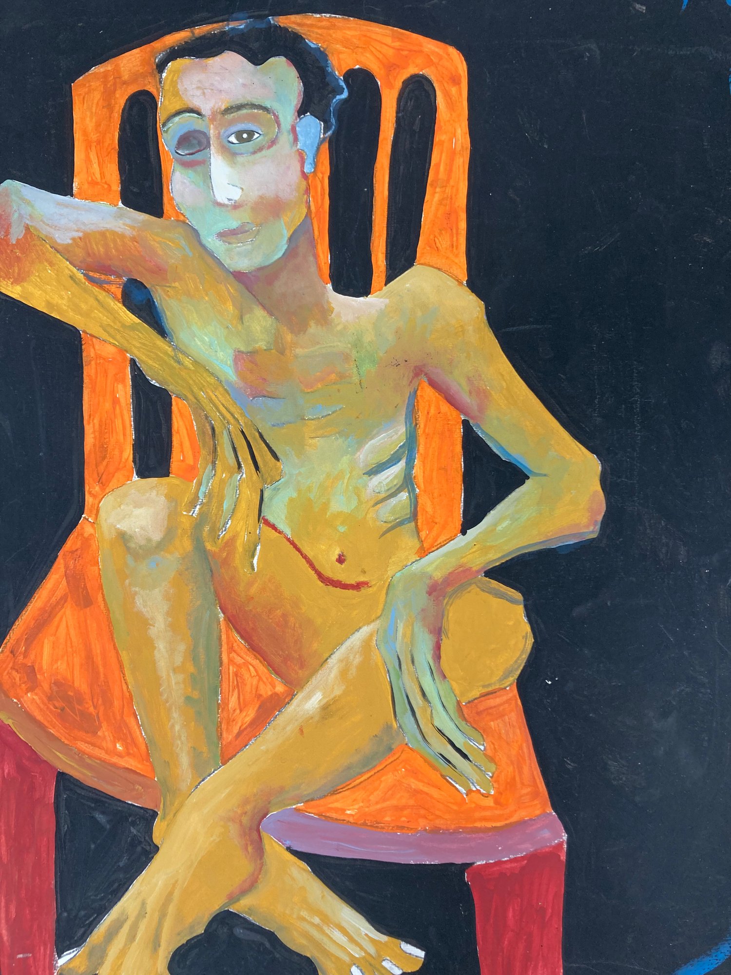 Mid Century Modern Abstract original painting of a man. Dimensions are: 24” tall x 18” wide. Condition: See photos.