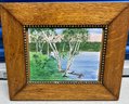 Oil On Canvas Birch Trees. Dimensions are: 7” tall x 9” wide. Good condition. Oak Frame.