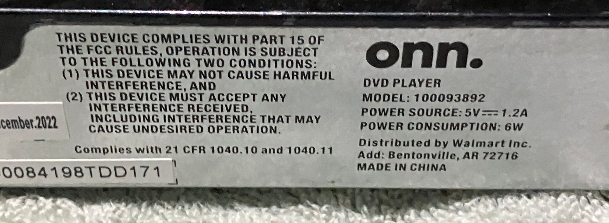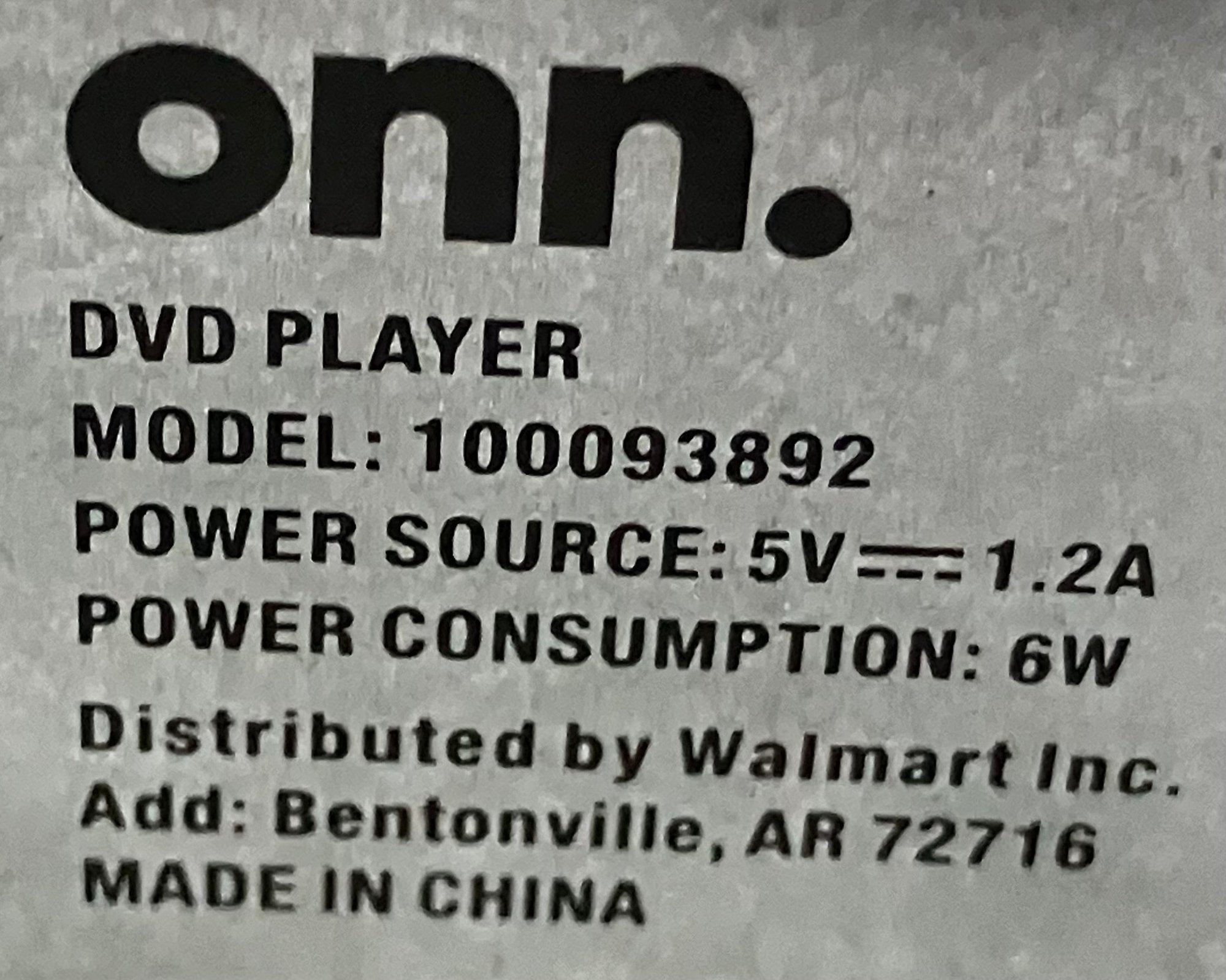 ONN DVD Player model 100093892.