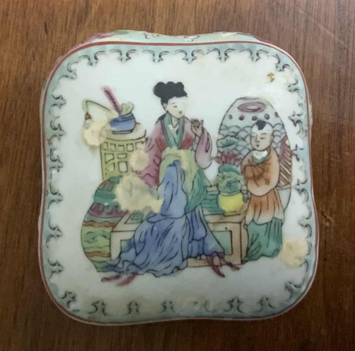 Oriental Porcelain Trinket Box. Fair condition.