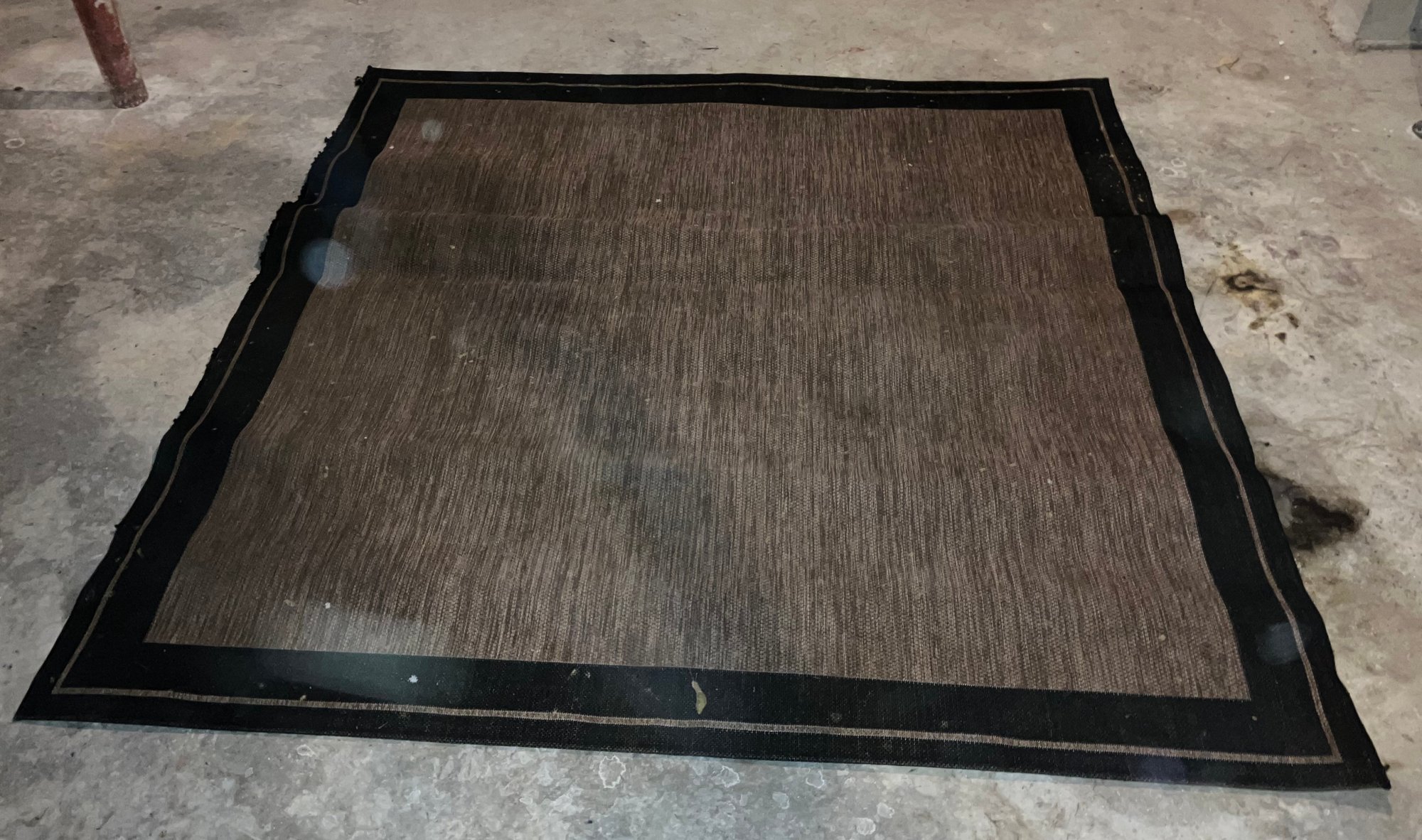 Outdoor patio carpet. Dimensions: 80” long x 79” wide.
