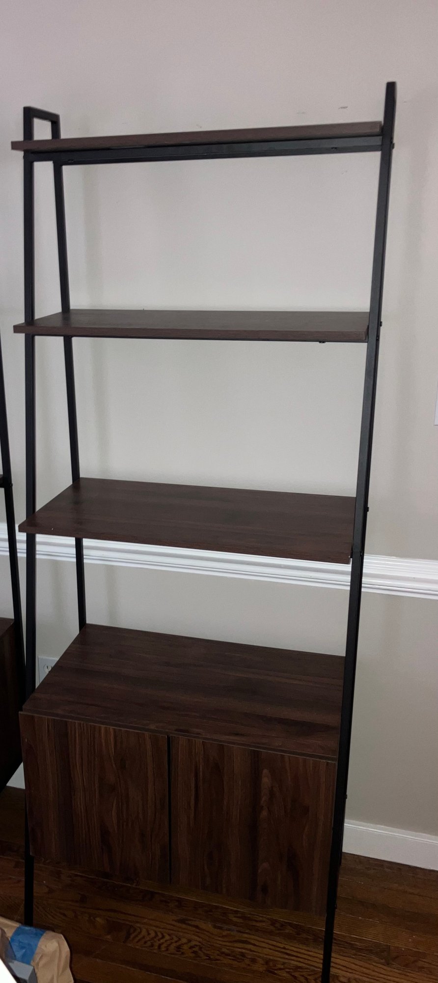 Graduated shelf bookcase with bottom cabinet. Dimensions: 71” tall x 28” wide x 16 1/2” deep. Very good condition. There are 3 of these bookcases. Each being sold separately.