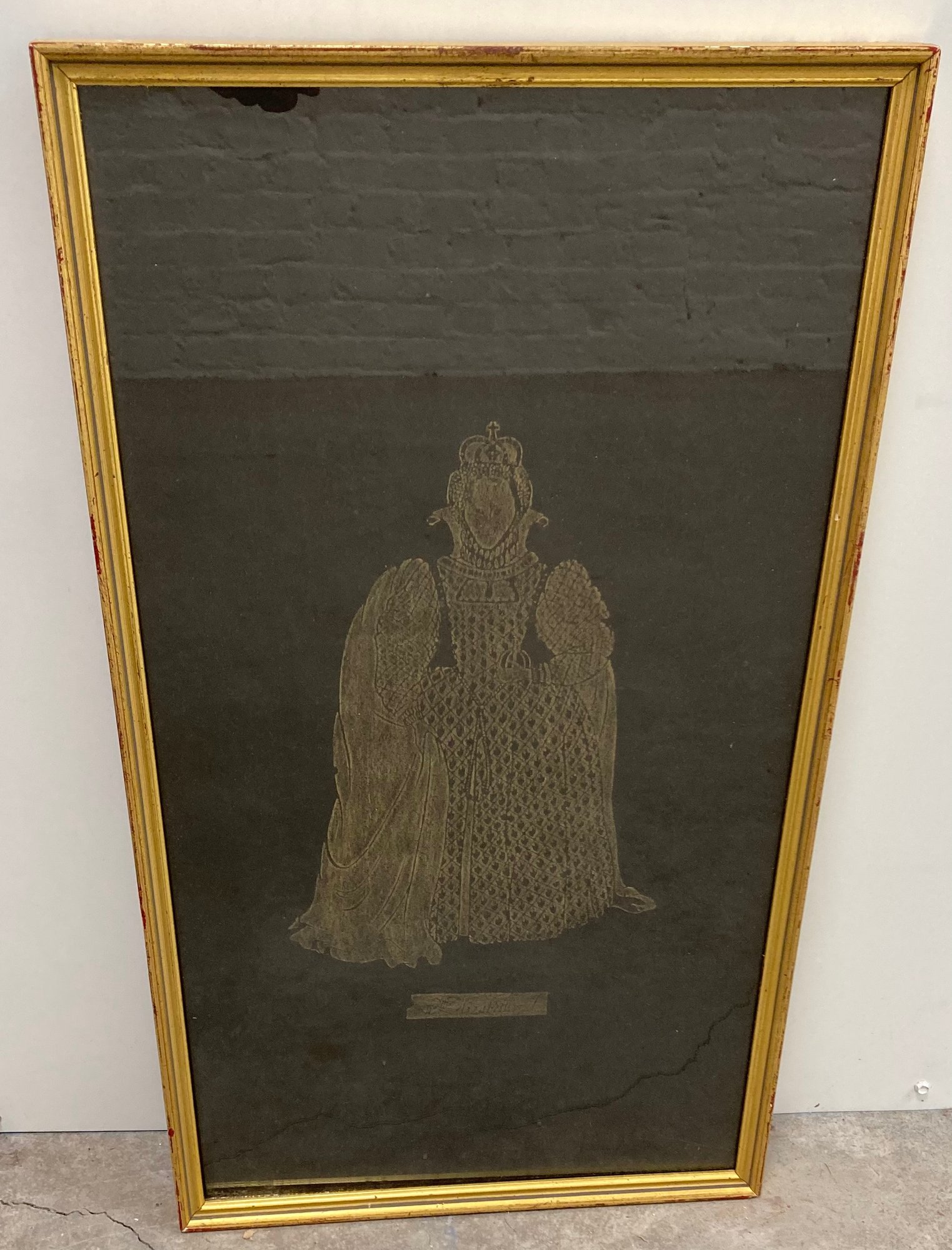 Rare Framed Etching Type Queen Elizabeth I. Dimensions are: 23 X 13. Good condition.