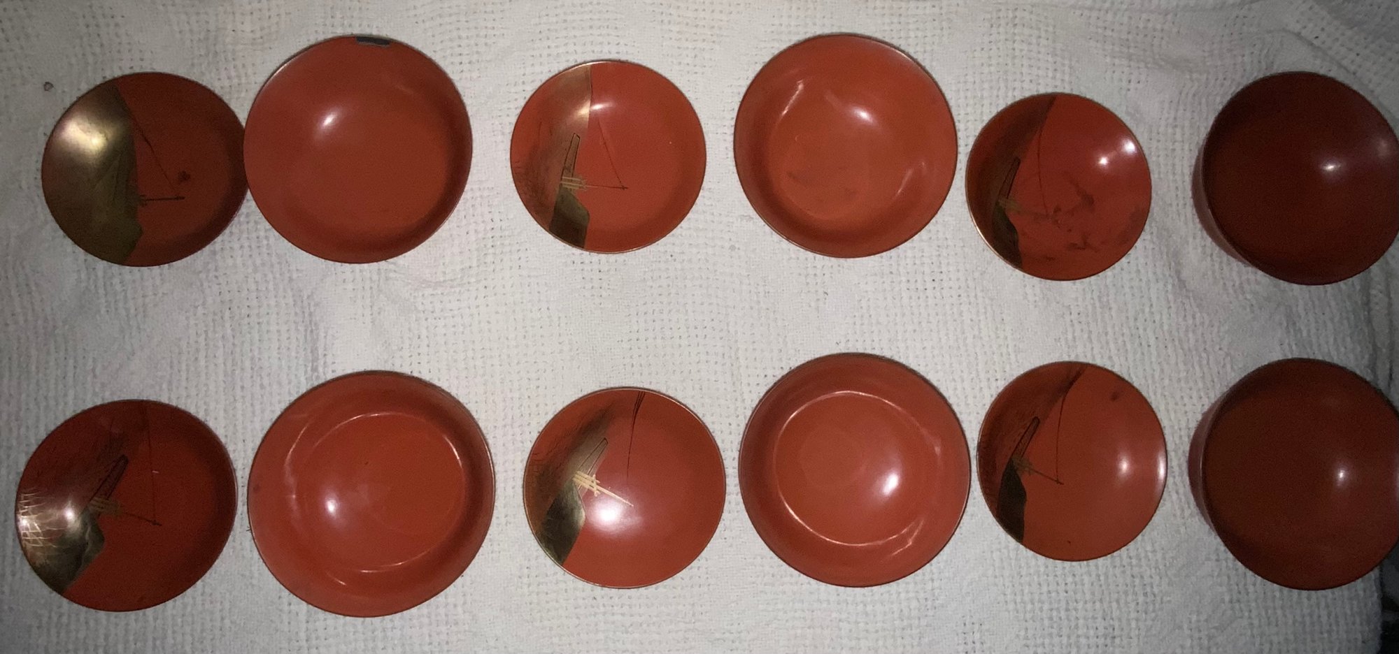 Red Lacquer Bowls. Good condition.